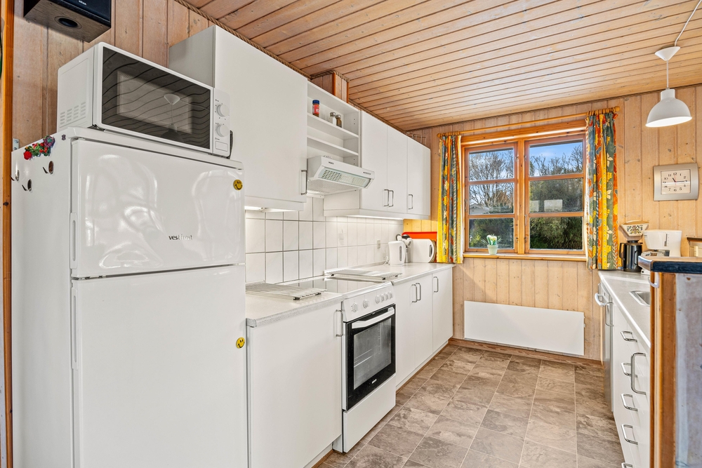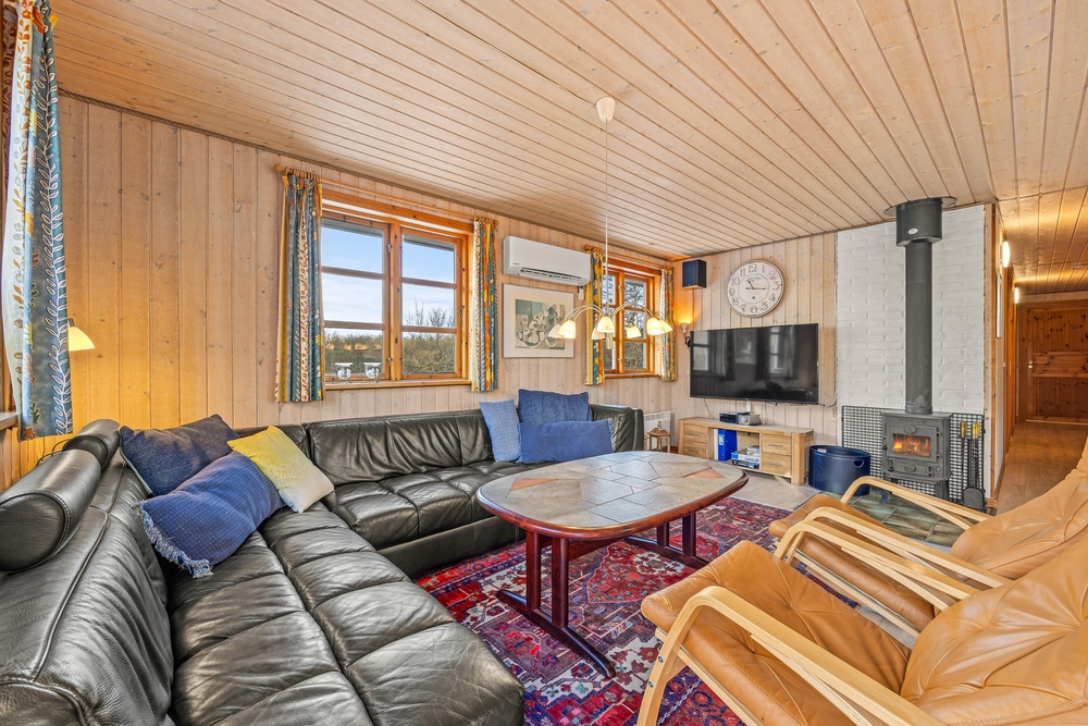 Der Wohnbereich des Ferienhauses im Møllevangen 30 ist der zentrale Ort für Entspannung und Geselligkeit. Hier findet ihr einen Kaminofen, der nicht nur an kühleren Tagen eine wohltuende Wärme spendet, sondern auch für eine behagliche Atmosphäre sorgt. Die moderne Küche bietet alles, was ihr für die Zubereitung leckerer Mahlzeiten benötigt. Dank der praktischen Spülmaschine gehört das Abwaschen der Vergangenheit an, was euch mehr Zeit mit euren Liebsten ermöglicht. Der offene, an die Küche angrenzender Essbereich, bietet ausreichend Platz für gemeinsame Mahlzeiten.