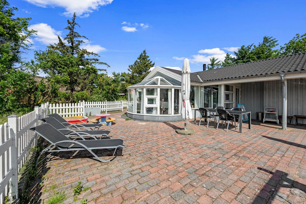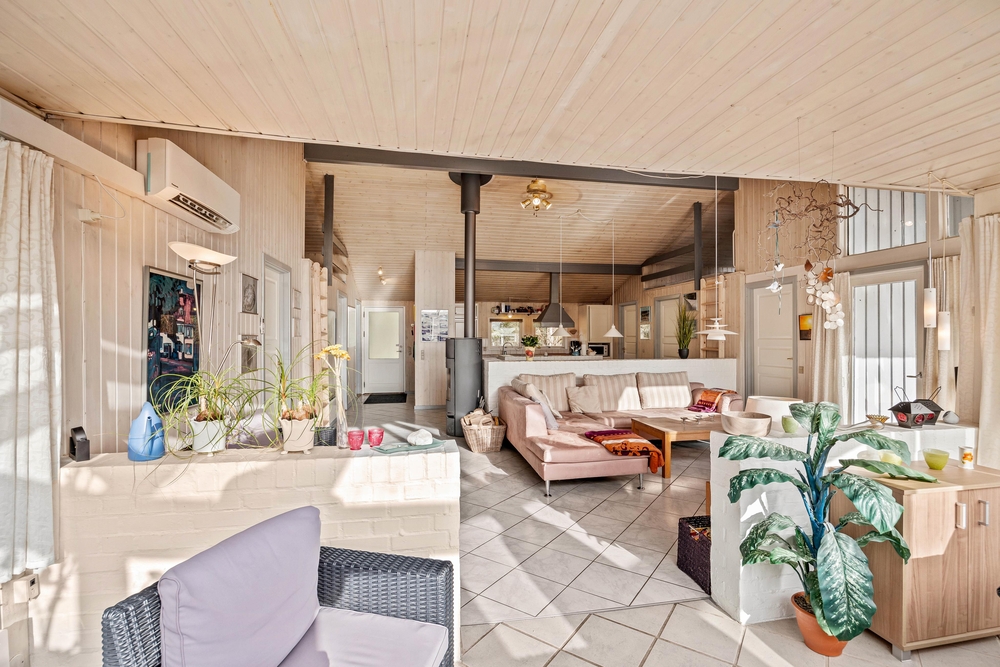 Nicht weit von Zentrum und Strand liegt dieses schöne Holzhaus im Mosevej 2, im idyllischen Ferienort Vejers. Auf 155 m² ist Platz für bis zu 8 Personen, mit 4 Schlafzimmern und 2 Bädern. Bestens geeignet für Familien mit Kindern, oder eurem Freundeskreis. Ein Highlight ist der lichtdurchflutete Wintergarten, mit Blick ins Grüne, während im Kaminofen das Feuer lodert. Sauna und Whirlpool runden die gemütliche Ausstattung ab.