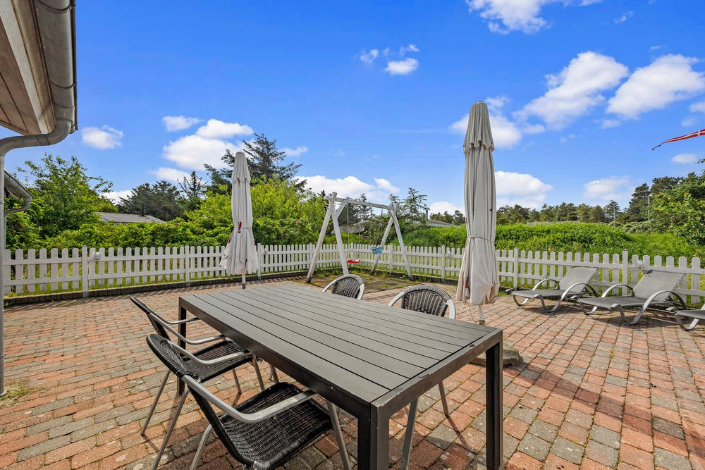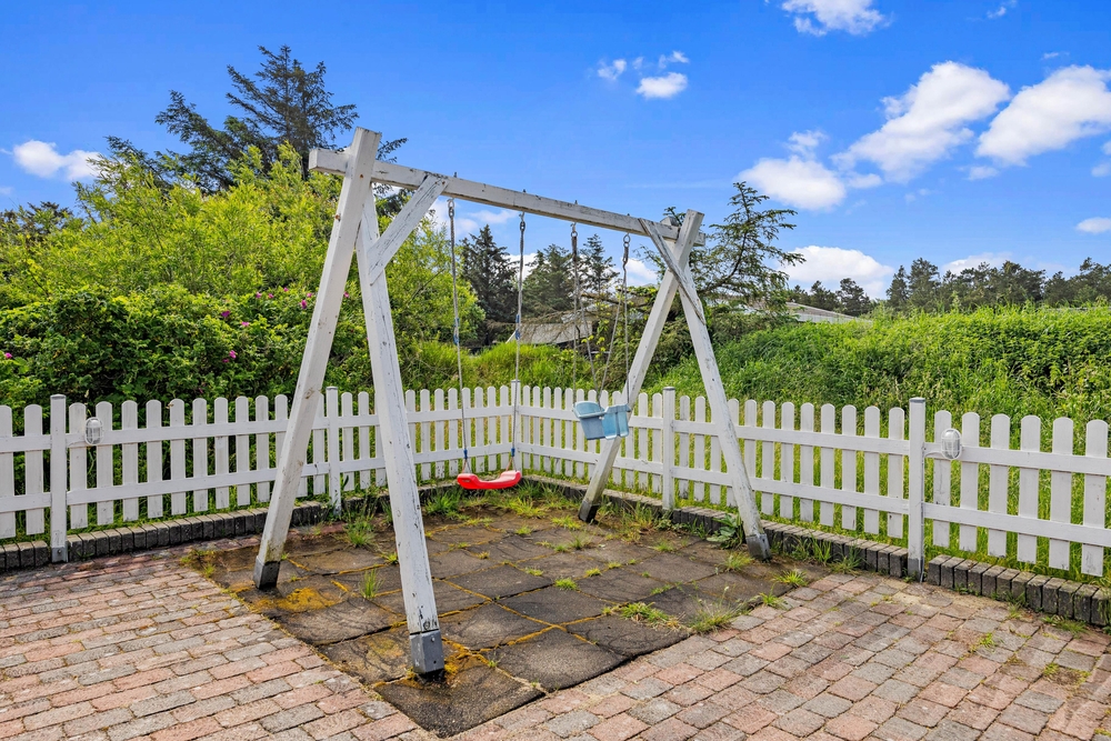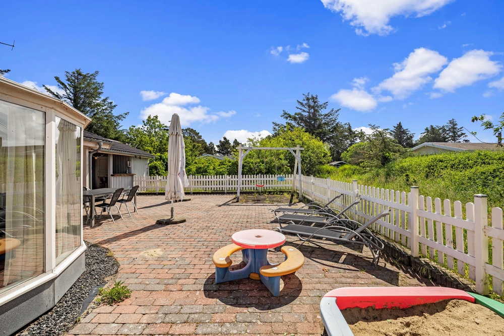 Auf der großen Terrasse genießt ihr die sonnigen Ferienstunden an der frischen Nordseeluft. Das Tolle ist, dass die Terrasse komplett eingezäunt ist, und Schaukel und Sandkasten direkt auf der Terrasse stehen. So könnt ihr auch die kleinen Feriengäste ganz entspannt draußen spielen lassen, während ihr in den Liegestühlen die Füße hochlegt. Wenn sich der Tag dem Ende neigt, und der Himmel schon in die schönsten Farben des Sonnenuntergangs getaucht wird, könnt ihr den Grill anmachen und den Abend bei einem leckeren Steak und einem kühlen Glas Wein dazu ausklingen lassen.