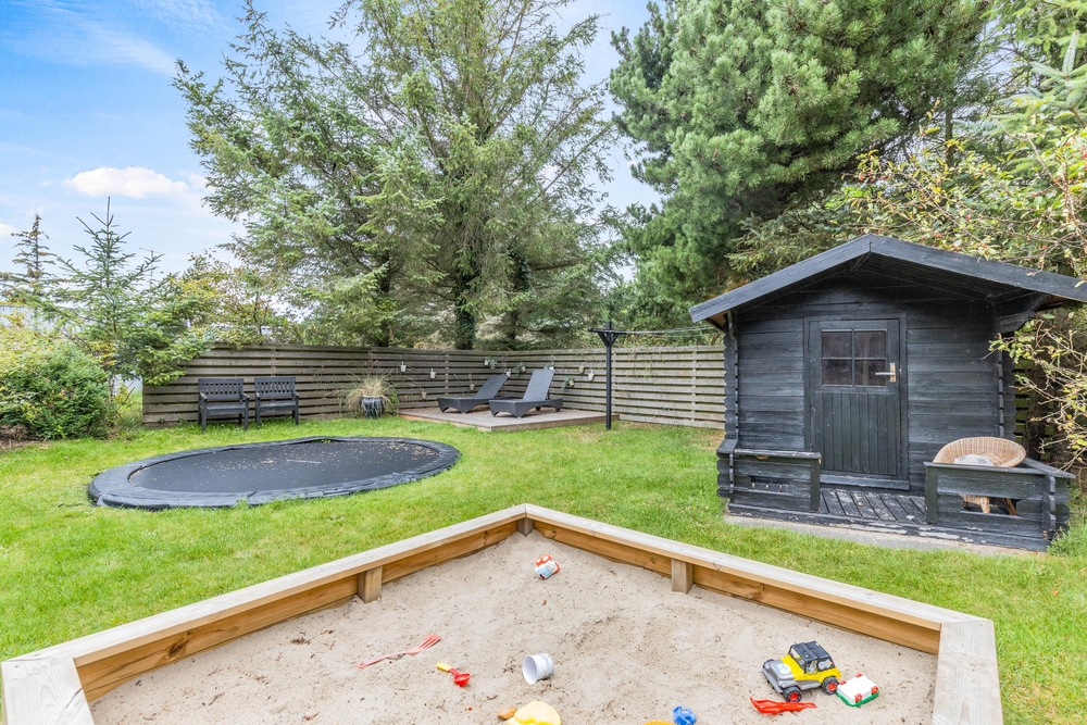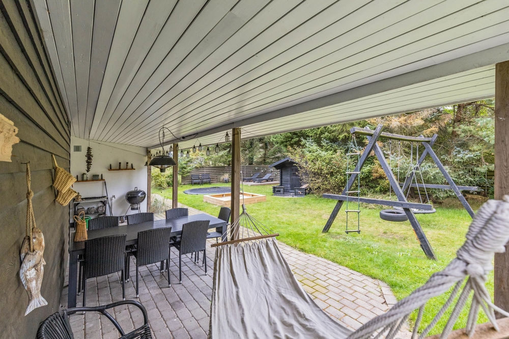Rund um dieses schöne Ferienhaus sind mehrere Terrassen angelegt. Somit ist ein sonniges Plätzchen zum Energie tanken immer gesichert. Liegestühle und Gartenmöbel stehen für gemeinsame Grillstunden, oder einer Kaffeepause mit leckerem dänischen Kuchen am Ferienhaus bereit.