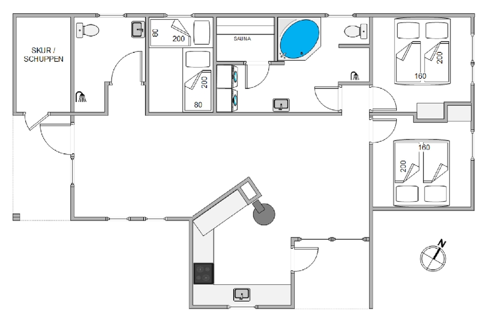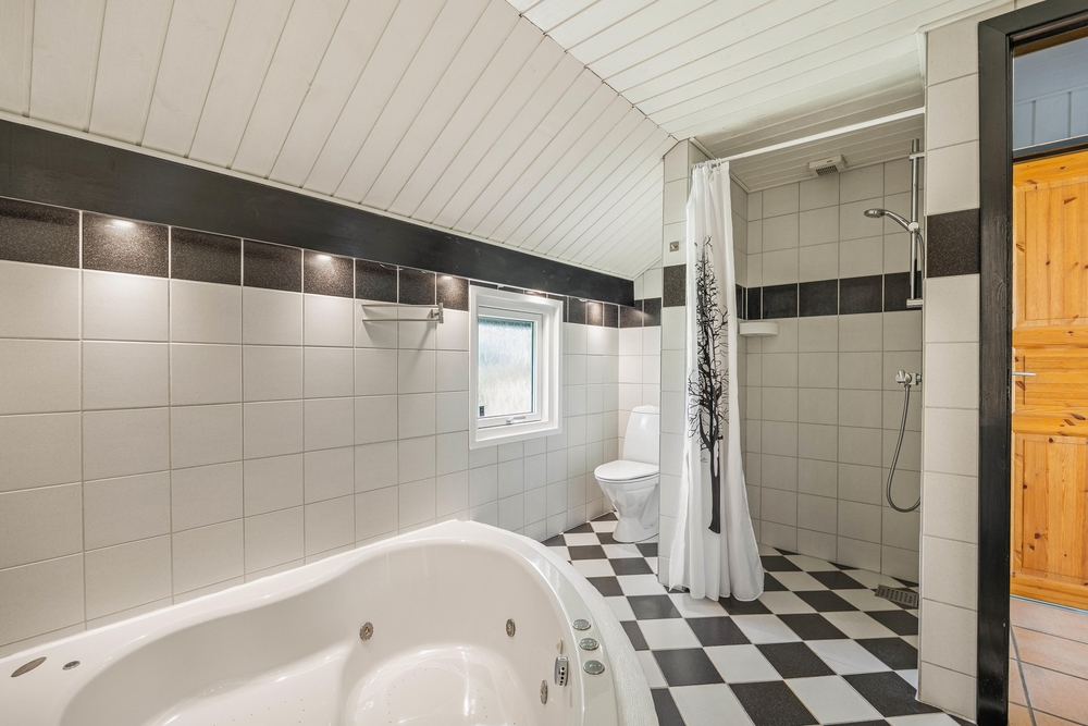 Es gibt im Ferienhaus 2 Badezimmer und falls ihr euch mal eine Wellnessauszeit gönnen möchtet, könnt ihr einen Saunaabend machen, und euch zwischendurch im sprudelnden Wasser des Whirlpools so richtig entspannen. Beide Bäder haben jeweils eine Duschnische und Fußbodenheizung.