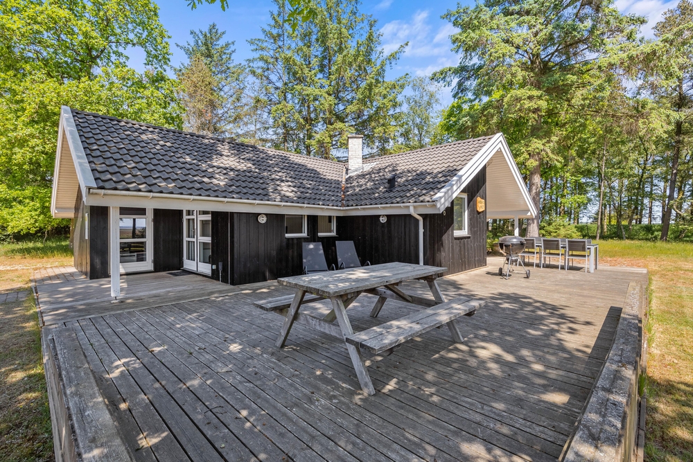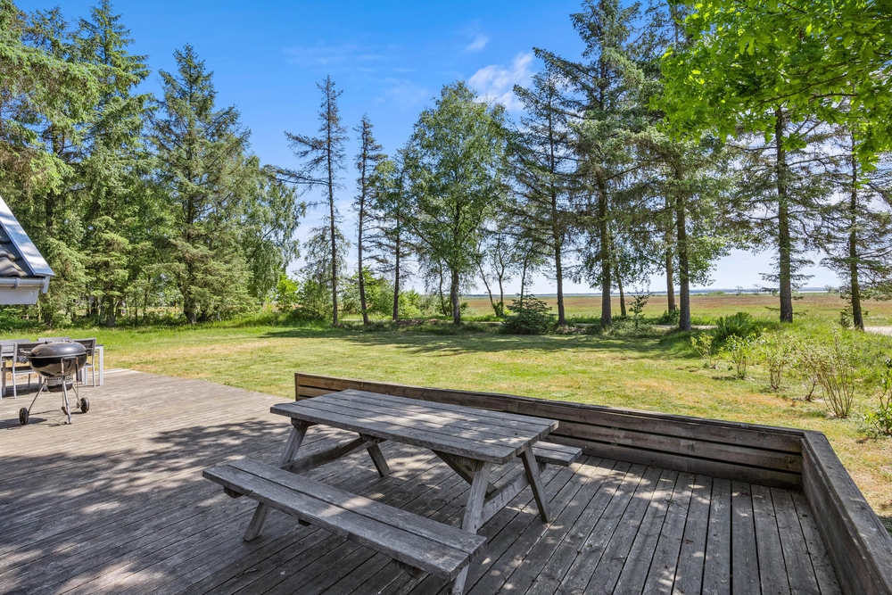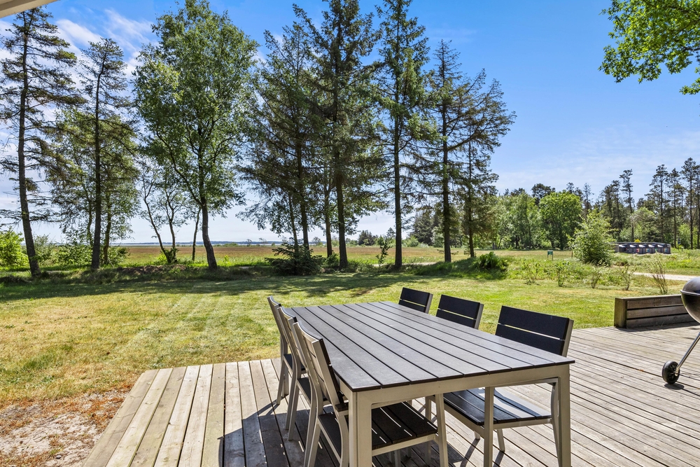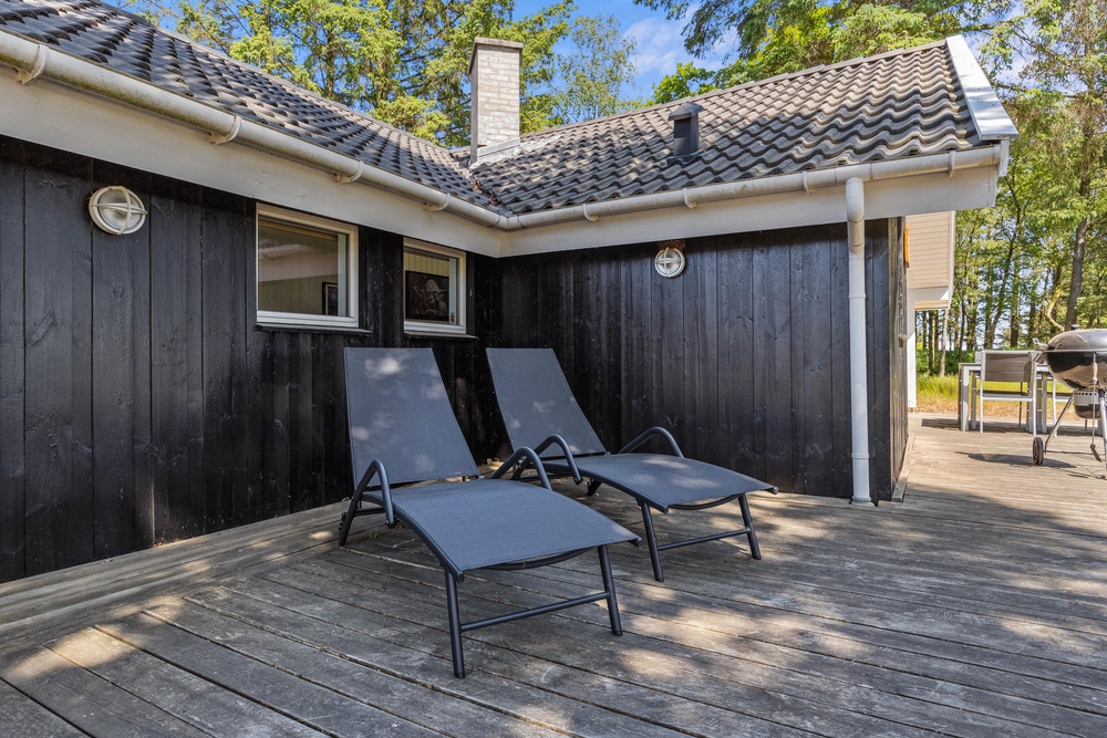 Auf der großen Holzterrasse könnt ihr euch in den Liegestühlen zurücklehnen und einfach die Natur beobachten oder die Sonnenstrahlen genießen.In den offenen Bereichen rund um das Ferienhaus gibt es oft Rehe und Hirsche sowie viele Zugvögel und andere Vogelarten über dem Wasser zu sehen.