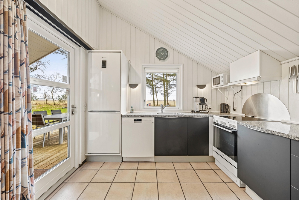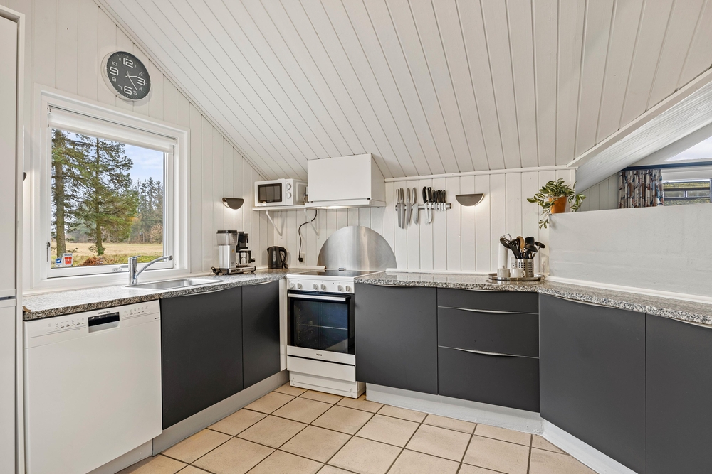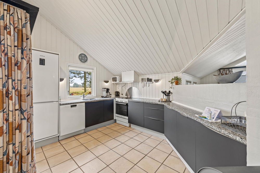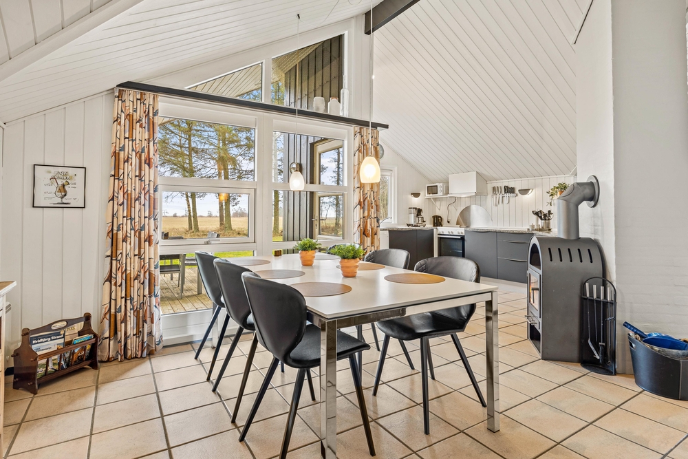 Die Räume vom Ferienhaus auf 98 m2 im Mosevråvej 6 sind hell und freundlich eingerichtet. Die hohen, ausgebauten Dachschrägen geben eine gemütliche Atmosphäre. Das Herz des Hauses, ist der offene Wohnbereich mit Küche und Essplatz. Mit einem knisternden Feuer im Kaminofen könnt ihr es euch hier richtig gemütlich machen, und die gemeinsame Familienzeit genießen. Die Küche ist mit allem ausgestattet was man braucht, und bietet ausreichend Arbeitsplatz für große und kleine Köche.