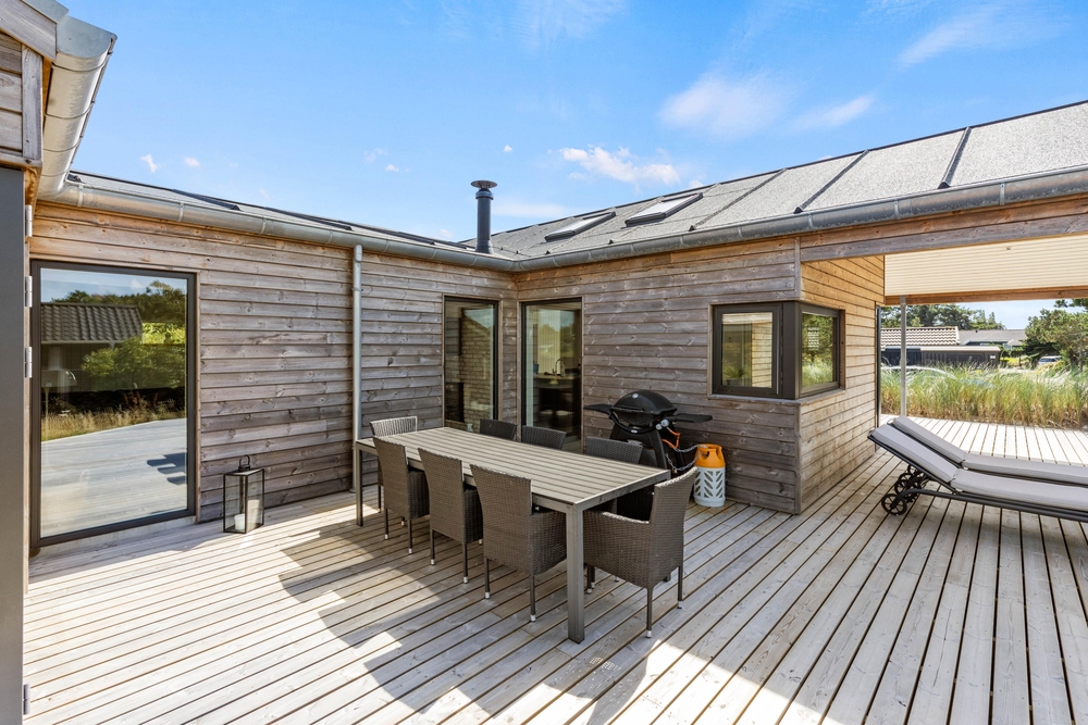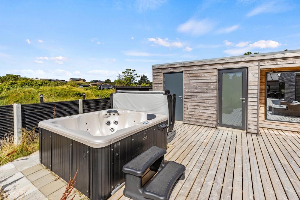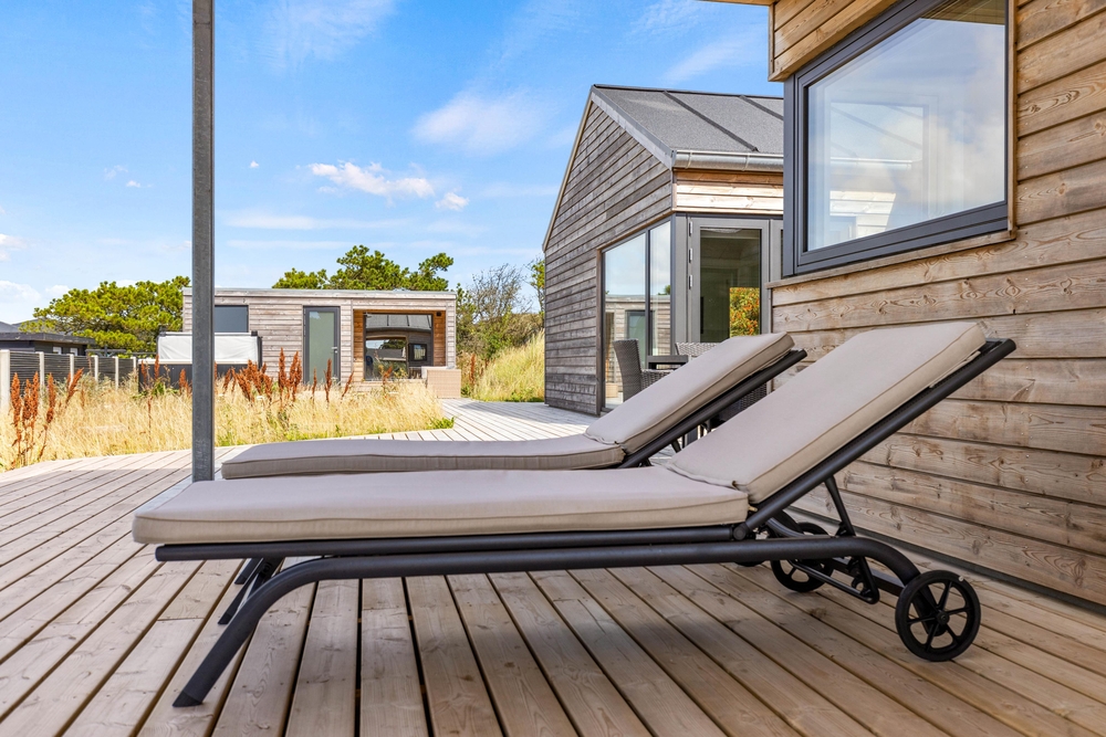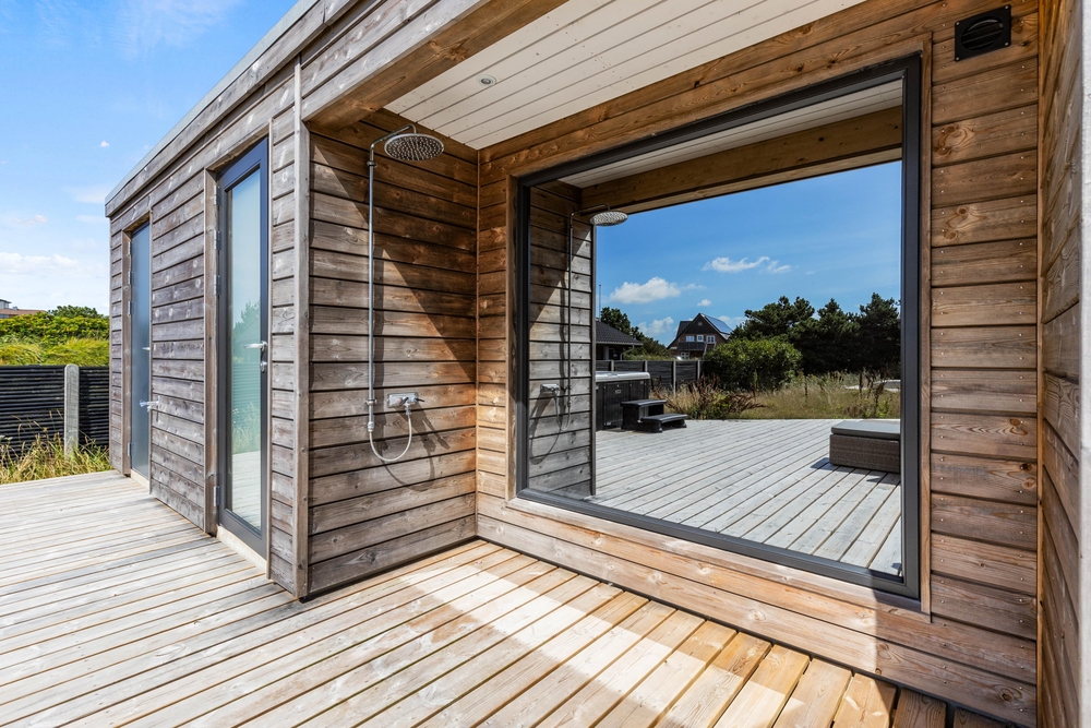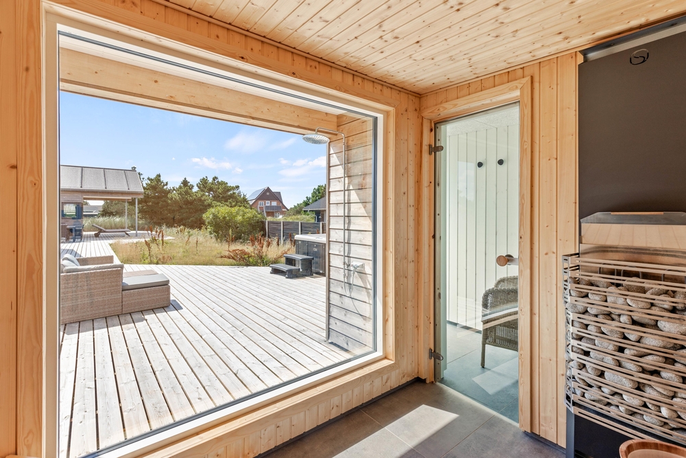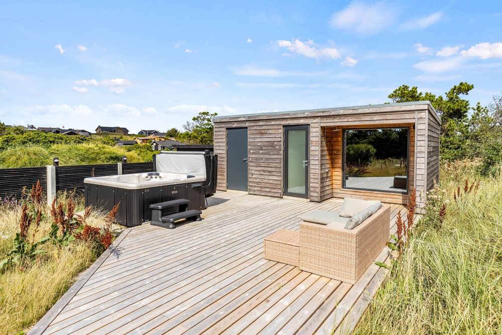 Auf der traumhaften Terrasse habt ihr ausreichend Platz, um die Sonnenstunden zu genießen. Genügend Gartenmöbel und Sonnenliegen zum Entspannen stehen euch dafür zur Verfügung. Ein absolutes Highlight sind die Außensauna und der Außenwhirlpool. Mit Ausblick in die Natur könnt ihr in der Sauna schwitzen, um dann nach einer Abkühlung unter der Außendusche* den Sternenhimmel über Henne im sprudelnden Wasser des Whirlpools zu genießen. Was will man mehr?