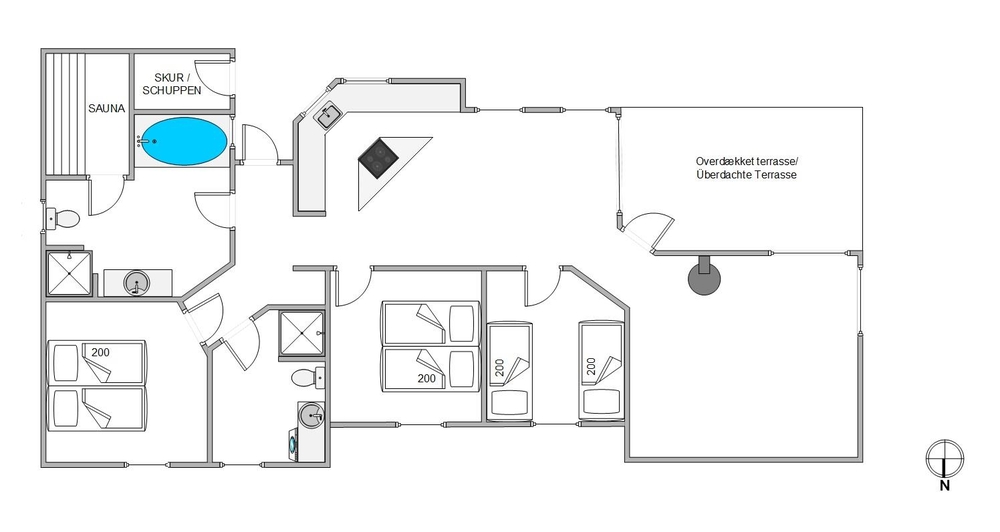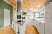 Dieses Ferienhaus wurde im Jahre 1990 erbaut, aber ist im Jahre 2023 renoviert worden, und hat ein helles und gemütliches Interior bekommen. Die Küche ist mit dem Wohnzimmer verbunden, und hier könnt Ihr alle zusammen sein, währende der eine kocht, und Ihr anderen gemeinsam einen Familienfilm anschaut. Und was wäre Film ohne Popcorn? In dieser gutausgestatteten Küche gibt es selbstverständlich eine Mikrowelle, so dass es hier keine Ausreden gibt.