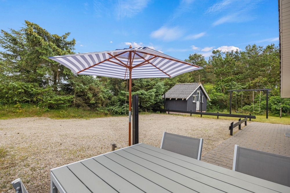 Auf der teilweise abgeschirmten Terrasse findet Ihr leicht eine Ecke mit Schutz. Sonnt euch auf den bequemen Sonnenliegen oder kuschelt euch in den Gartenmöbeln unter der Überdachung, wenn Ihr Schutz oder Schatten benötigt. Auch könnt Ihr euch hier ein leckeres Grillessen auf dem Grill zubereiten. Für den kleinsten Familienmitglieder gibt es einen schönen eingebauten Sandkasten.