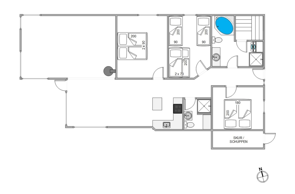 Im gemütlichen Wohnzimmer, die eine Stufe tiefer liegt, und wohl ausgestattete Küche mit Mikrowelle, Geschirrspüler und 80 Liter Gefrierschrank könnt Ihr viel gemeinsamer Zeit verbringen. Und im einer der Badezimmer, die beide über Fußbodenheizung verfügen, gibt es obwohl einen Whirlpool als auch eine Sauna: die perfekte Lage einen Wellness Auszeit zu gestalten. Eine Waschmaschine und ein Trockner stehen auch zur Verfügung, und könnt Ihr regelmässig euere Handtücher während eures Urlaubs auffrischen. Um die Endreinigung braucht Ihr euch keine Gedanken machen, da diese im Preis inbegriffen ist.