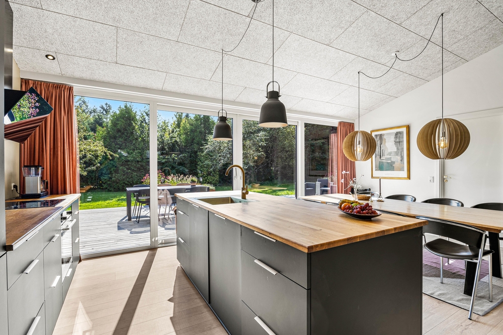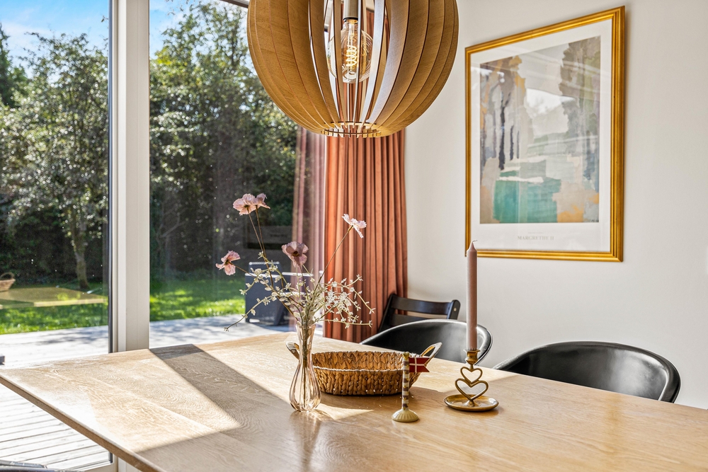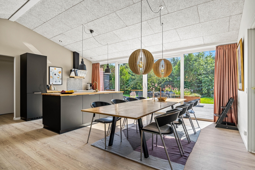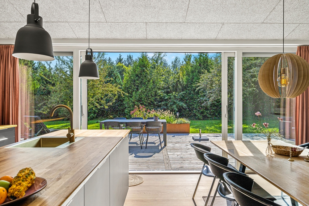 Der Wohnbereich liegt in offener Verbindung zur modernen und gut ausgestatteten Küche sowie dem gemütlichen Essbereich. Unabhängig, ob ihr gerade eine leckere Mahlzeit vorbereitet oder nebenher eure Lieblingsserie im TV schauen möchtet, könnt ihr die Gemeinschaft miteinander genießen. Vom Wohnbereich gelangt ihr auch auf die angrenzende Terrasse, sodass ihr insbesondere im Sommer auch herrlich im Freien sitzen und gemeinsam essen könnt.