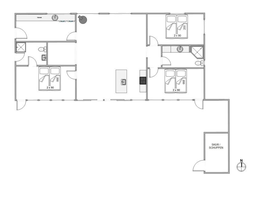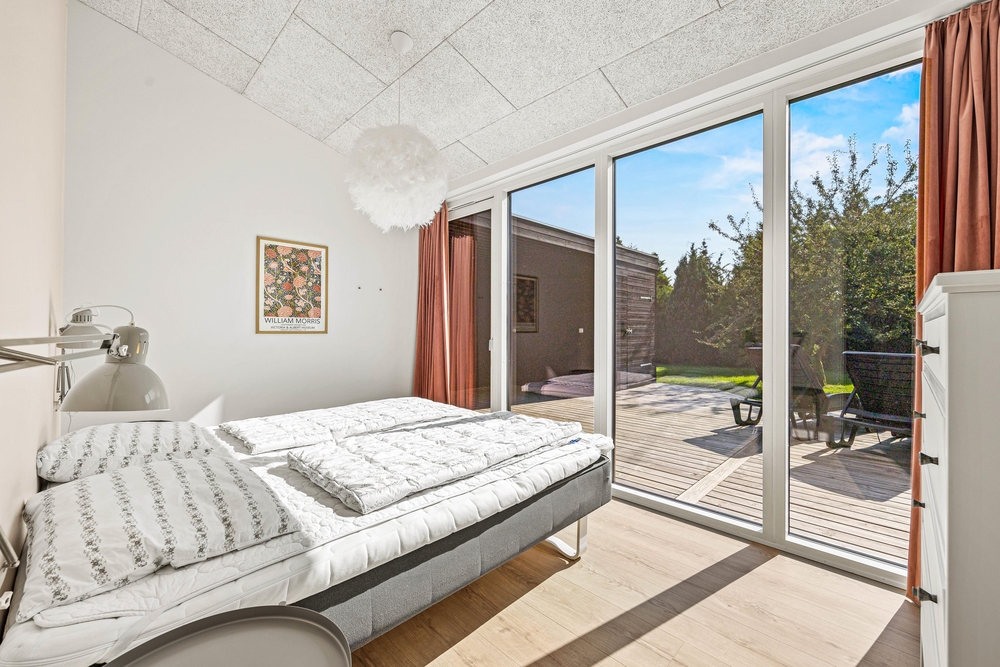 Das Ferienhaus in Jegum verfügt über 117 m² Wohnfläche. Dank der 2 Badezimmer, welche mit Fußbodenheizung ausgestattet sind, eignet sich das Haus auch gut für einen Urlaub mit Freunden. Alle 3 Schlafzimmer sind mit einem Doppelbett (180×200) versehen und 2 Zimmer haben direkten Zugang