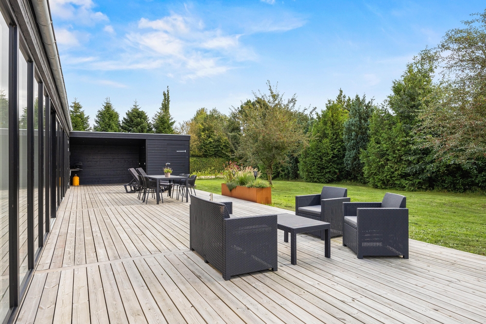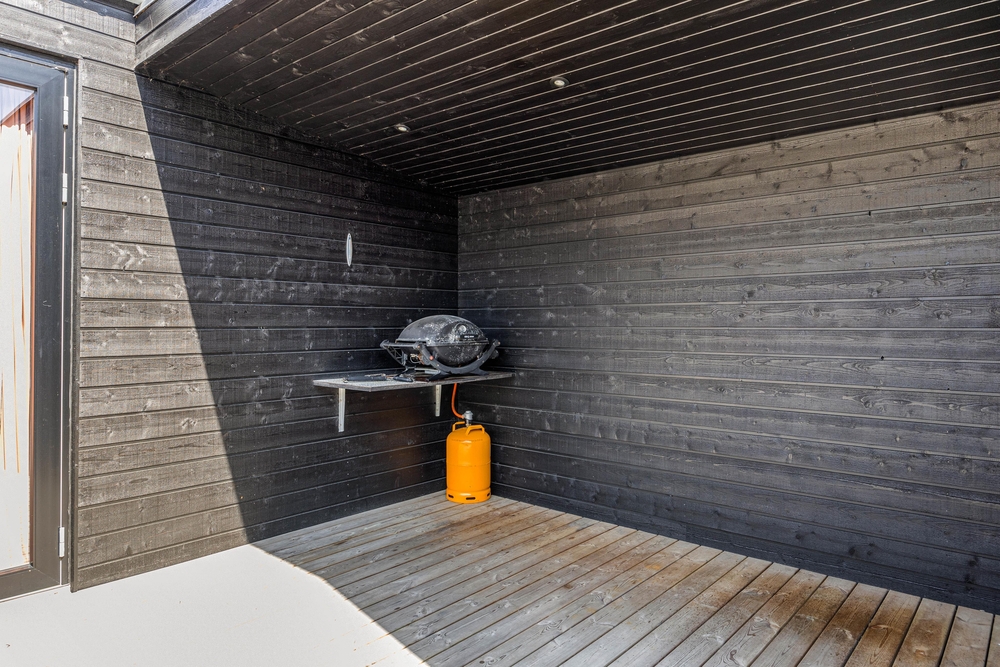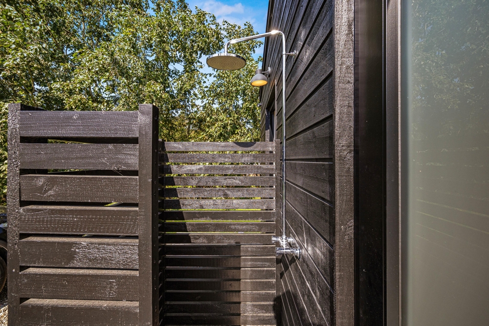 Auf der teilweise überdachten Terrasse findet ihr alles, was ihr für einen entspannten Terrassentag benötigt. Gartenmöbel, Sonnenliegen, ein Gasgrill sowie eine Außendusche. Es ist einfach herrlich, sich nach oder auch währende eines Sonnenbades direkt unter freiem Himmel zu erfrischen und die Vorzüge einer Außendusche liegen hier ganz klar auf der Hand. Ebenso gut könnt ihr den Tag unter der Dusche an der frischen Luft starten ? während euer Hund schon ungeduldig auf den ersten Morgenspaziergang mit euch wartet. Beachtet bitte, dass die Außendusche von April bis November genutzt werden kann.
