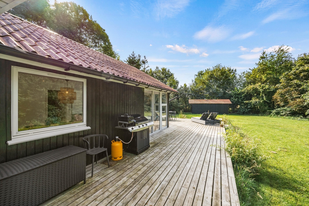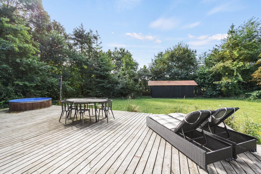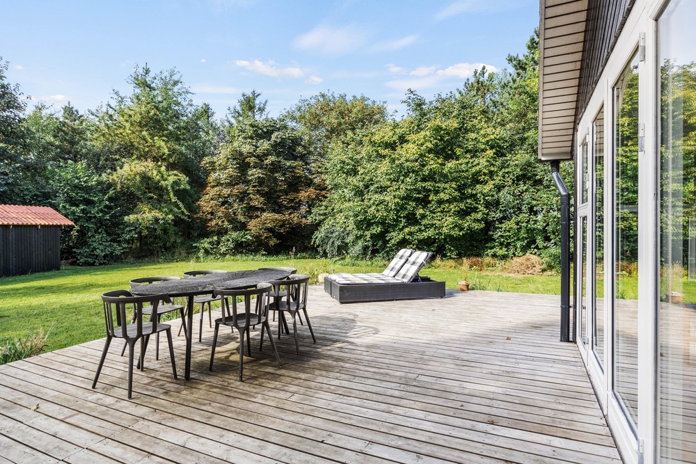 Das weitläufige Rasengrundstück bietet viel Platz für ausgiebige Sonnenbäder, sportliche Aktivitäten oder gemütliche Tage mit einem guten Buch im Schatten. Auf der offenen Terrasse könnt ihr beim Frühstück die ersten Sonnenstrahlen des Tages genießen, am Nachmittag Kaffee und Kuchen servieren oder den Abend bei einem Glas Wein ausklingen lassen.