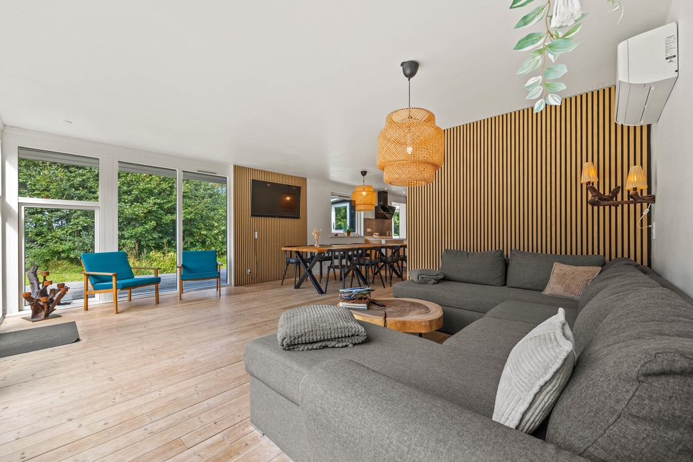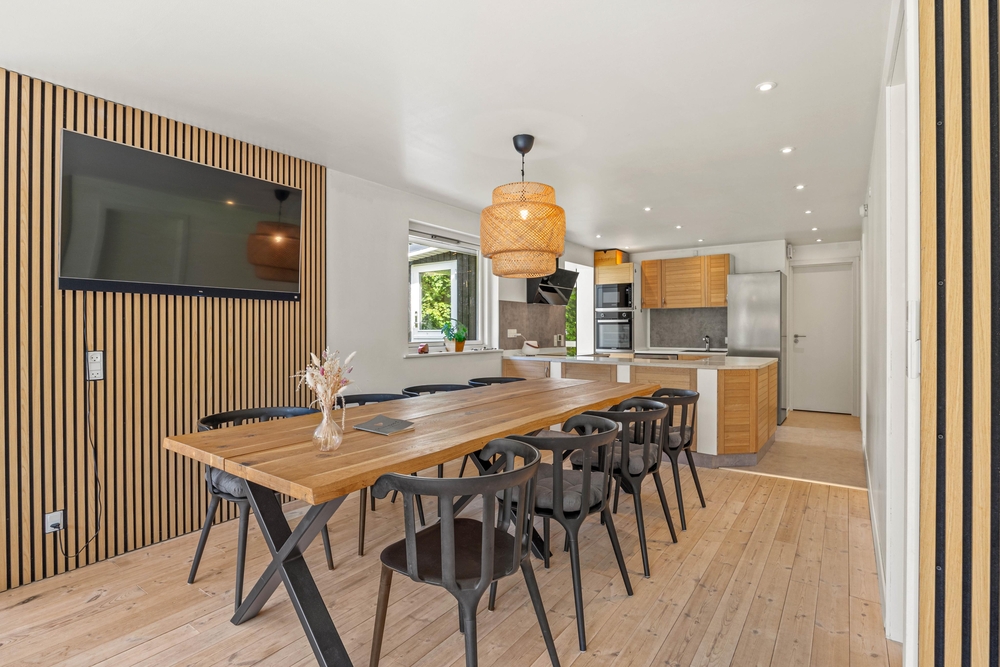 Mit 90 qm Wohnfläche bietet das im Jahr 2022 renovierte Ferienhaus ausreichend Platz für bis zu 8 Personen. Besonders hervorzuheben ist die gut ausgestattete Küche, die euch zum gemeinsamen Kochen einlädt. Dank Spülmaschine bleibt auch nach dem Essen genügend Zeit zur Entspannung und Erholung. Durch das offene Raumkonzept ist der Wohnbereich direkt mit der Küche und dem Essbereich verbunden, was für viel Platz und eine kommunikative, lockere Atmosphäre sorgt. Ideal für gemeinsame Spieleabende, unterhaltsame Abende mit Filmen und Serien oder lange, gesellige Abende rund um den Esstisch.