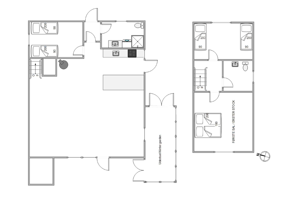 Das gemütliche Ferienhaus verfügt über drei Schlafzimmer. Das Schlafzimmer mit dem Doppelbett befindet sich im Erdgeschoss und die anderen zwei mit den Einzelbetten im ersten Stock. Der Höhepunkt wird sicherlich der gemütliche Wintergarten sein. Hier könnt ihr abends in aller Ruhe euer Abendessen genießen und mit viel Glück schauen Rehe, Hasen oder Fasane vorbei.