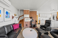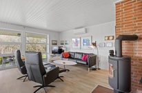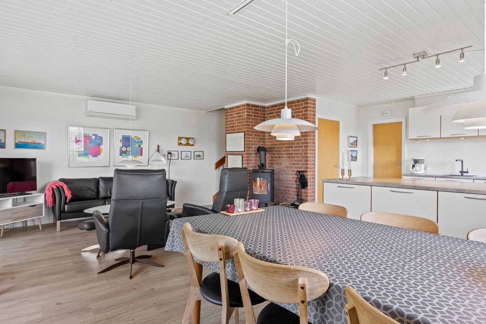 Das Zentrum des Ferienhauses ist der offene Wohnbereich, in dem es eine Kombination aus Küche, Essbereich und Wohnzimmer gibt. Hier kann die ganze Familie Zeit miteinander verbringen, egal ob die einen kochen und die anderen es sich auf dem Sofa mit einem Film gemütlich machen. Das gesamte Ferienhaus verfügt über Holzdecken und teilweise Holzwände, was dazu beiträgt, dass Gemütlichkeit hier großgeschrieben wird.