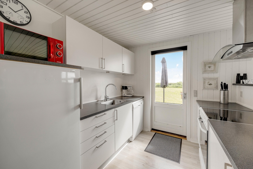 Dieses 2020 renovierte Ferienhaus, mit einem traumhaften Ausblick über die Bucht von Ho steht im Nørballevej 19A in Ho. Die Lage ist wirklich ein absolutes Highlight für Familien und Naturliebhaber, die sich in der Ruhe und Schönheit der Umgebung der dänischen Westküste wohlfühlen. Auf dem großen ebenen Rasengrundstück können sich die Kinder frei bewegen, toben und schaukeln.
