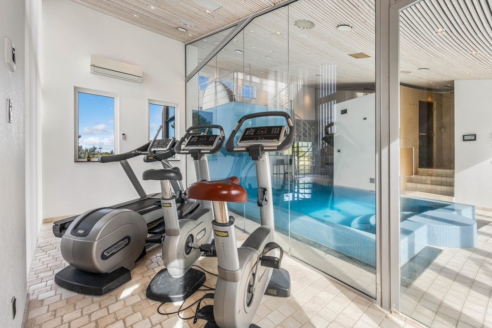 Seid Ihr gerne sportlich aktiv, dann könnt Ihr Euch im eigenen Fitnessraum so richtig auspowern. Ihr habt eine Auswahl von Laufband, Stepper und einem Heimtrainer, um den Puls so richtig in die Höhe zu treiben. Für die anschließende Entspannung wird der Wellnessbereich sorgen. Egal ob Pool, Sauna, Whirlpool oder Dampfbad, bei der Auswahl findet jeder für sich das Richtige, um zu Entspannen und vom Alltag abzuschalten.