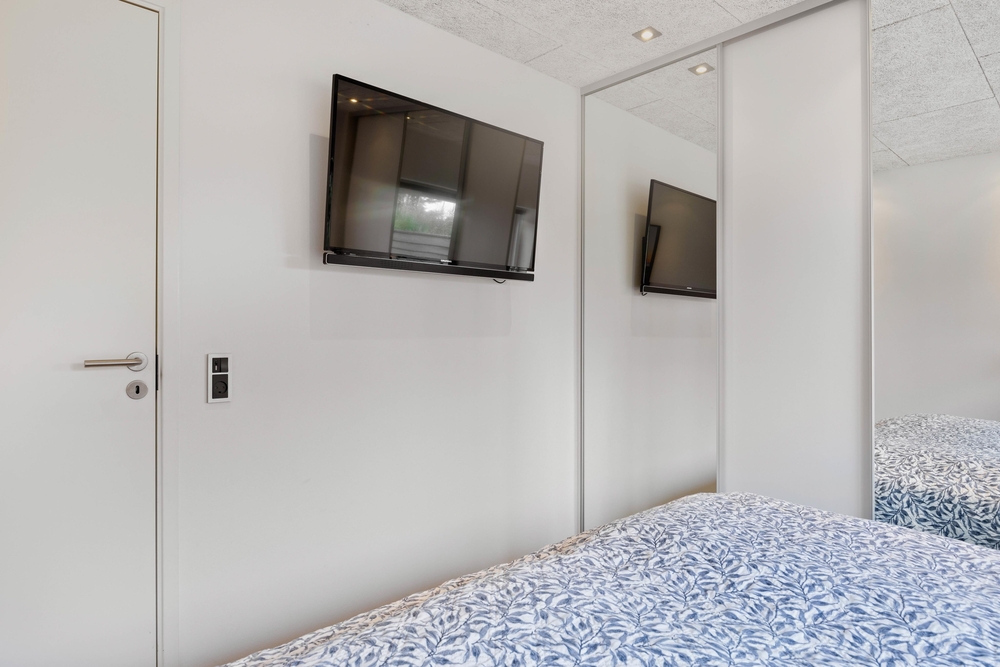 Das Ferienhaus ist mit Solarzellen auf dem Dach und einer Luft zu Wasser-Wärmepumpe ausgestattet, die das gesamte Haus mit einer wasserbasierten Fußbodenheizung versorgt. Diese Kombination sorgt für ein hervorragendes Raumklima, ist äußerst energieeffizient und sorgt für eine möglichst geringe Klimabilanz.