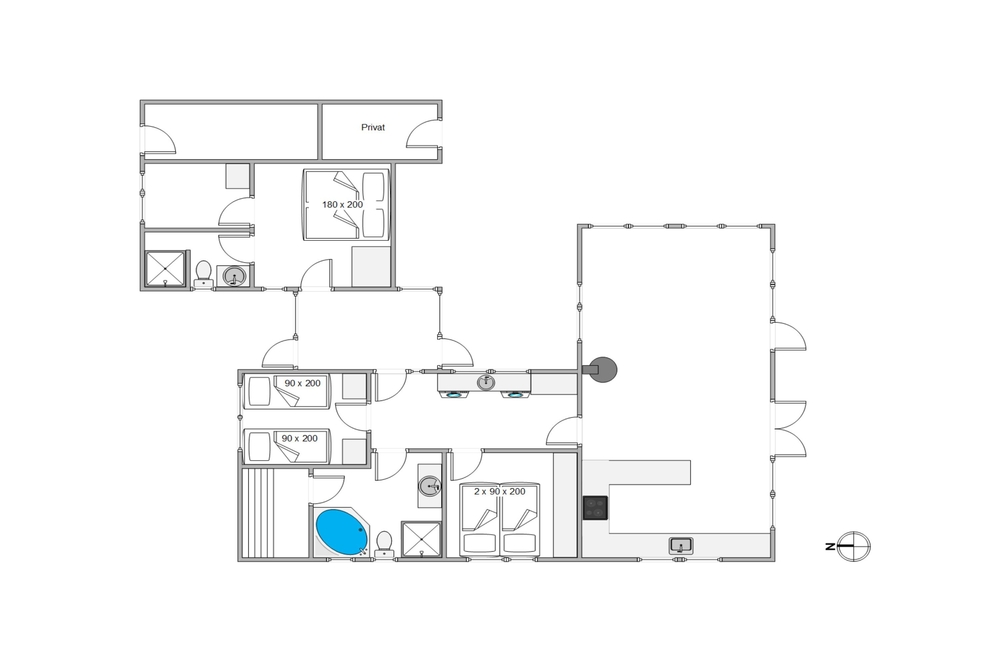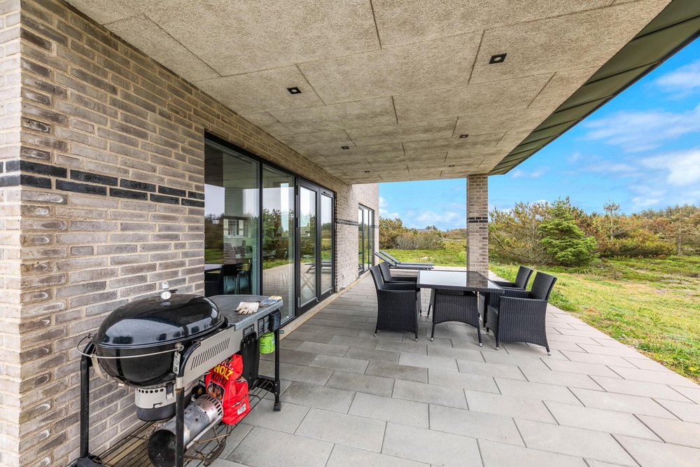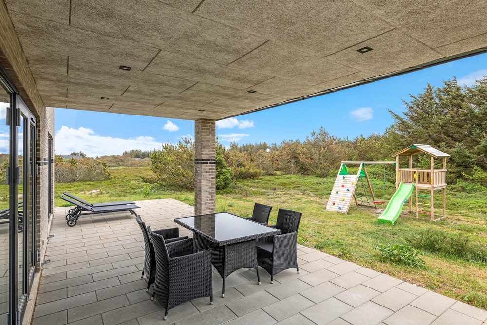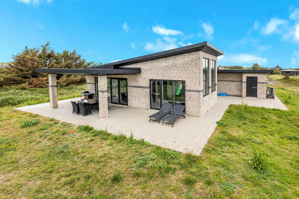 Nur 500 m von der tosenden Nordsee und wenige Autominuten vom Zentrum Søndervigs entfernt, bietet dieses stilvolle Ferienhaus Platz für insgesamt 6 Personen. Die moderne und zugleich stilvolle Einrichtung (einschließlich Sauna und Whirlpool) sorgen für die richtige Urlaubsatmosphäre. Auf dem mehr als 2.500 Quadratmeter großen Naturgrundstück mit überdachter Terrasse, Spielwiese und Klettergerüst, gibt es genügend Platz für Spiel und Entspannung.