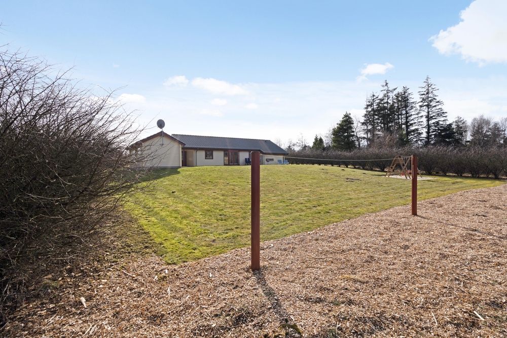 Das großzügige Rasengrundstück im Nordskrænten 40 lädt zum Spielen, Entspannen und Genießen der frischen Luft ein. Hier können Kinder und Hunde gleichermaßen toben und spielen. Eine offene Terrasse bietet den idealen Ort für gesellige Stunden unter freiem Himmel. Hier lässt es sich wunderbar frühstücken, sonnenbaden oder bei einem Grillabend die Gesellschaft von Familie und Freunden genießen. Neben der offenen Terrasse gibt es auch eine überdachte Variante, die es ermöglicht, die Natur zu genießen, selbst wenn das Wetter nicht optimal ist und ist der perfekte Rückzugsort bei einem leichten Sommerregen oder an windigen Tagen.