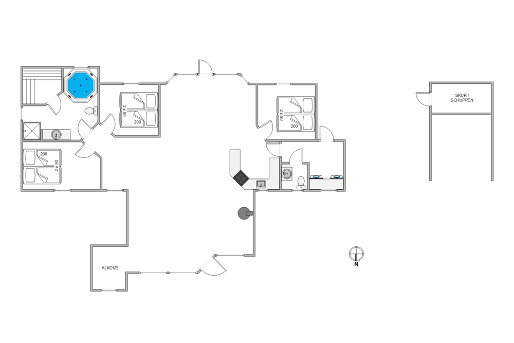 Das Ferienhaus im Nordskrænten 40 verfügt über 2 Schlafzimmer. Eines der Schlafzimmer hält 1 Etagenbett bereit, welches besonders bei den jüngeren Gästen beliebt ist. Das 2. Schlafzimmer ist mit 2 Einzelbetten ausgestattet. Im Badezimmer sorgt eine Fußbodenheizung für angenehme Wärme, selbst an kühleren Tagen.