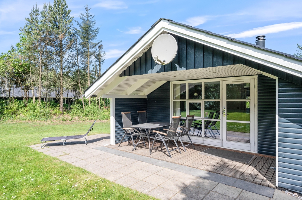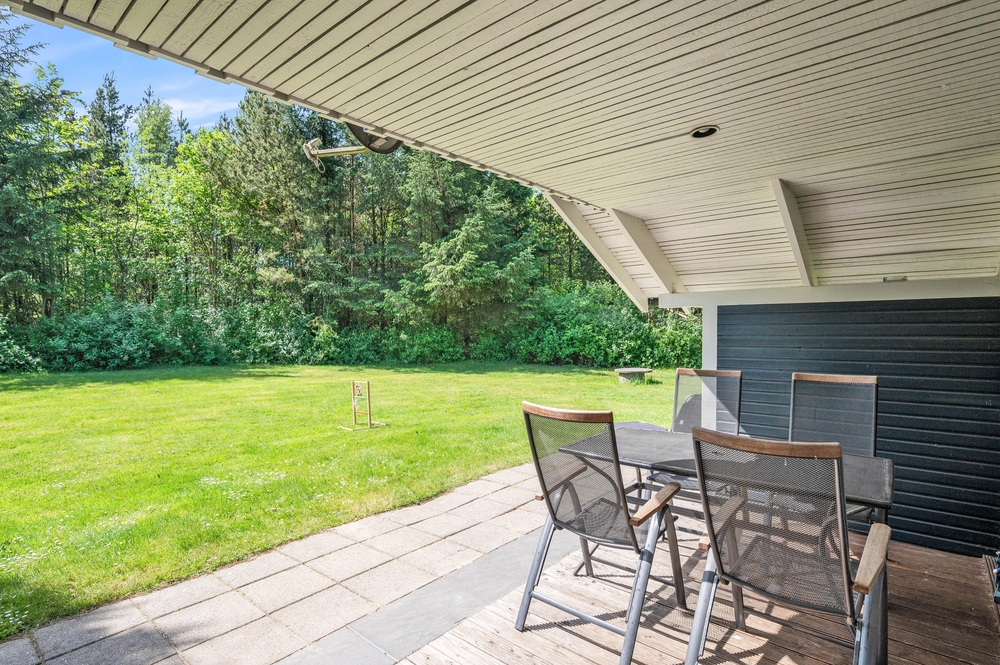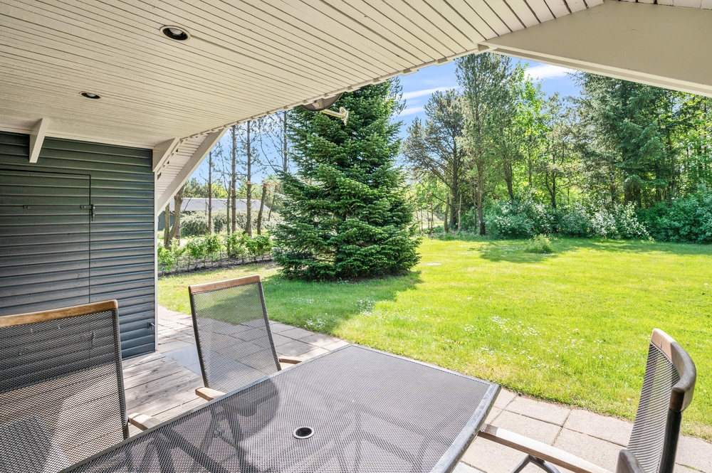 Eine offene Terrasse bietet den idealen Ort für gesellige Stunden unter freiem Himmel. Hier lässt es sich wunderbar frühstücken, Sonnenbaden oder bei einem Grillabend die Gesellschaft von Familie und Freunden genießen. Neben der offenen Terrasse gibt es auch einen überdachte Bereich, der es ermöglicht, die Natur zu genießen, selbst wenn das Wetter nicht optimal ist, und ist der perfekte Rückzugsort bei einem leichten Sommerregen oder an windigen Tagen.