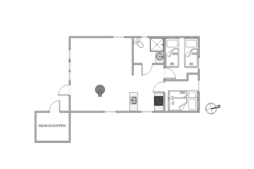 Das Ferienhaus im Nordskrænten 60 verfügt über 2 Schlafzimmer. Eines der Schlafzimmer hält ein Etagenbett bereit, welches besonders bei den jüngeren Gästen beliebt ist. Das 2.Schlafzimmer ist mit 2 Einzelbetten ausgestattet. Im Badezimmer sorgt eine Fußbodenheizung für angenehme Wärme, selbst an kühleren Tagen.
