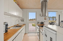 Im offenen Wohnbereich könnt ihr euch mit verschiedenen Aktivitäten wie Gesellschaftsspielen oder einem guten Buch entspannen. Kuschelt euch auf das Sofa und schaut einen Film, während der Kamin für eine behagliche Atmosphäre sorgt. In der voll ausgestatteten, offenen Küche, u. A. mit Spülmaschine und Induktionsherd, könnt ihr mühelos leckere Mahlzeiten zubereiten. Probiert doch auch mal ein typisch dänisches Rezept aus.