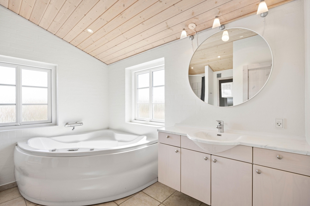 Das Ferienhaus in Klegod, gelegen an der Nordsø Ferievej 96, bietet auf 120 Quadratmetern ausreichend Platz für bis zu 8 Personen. Die liebevoll eingerichteten Räume umfassen 4 Schlafzimmer und 2 moderne Badezimmer, eines davon ausgestattet mit Whirlpool und Fußbodenheizung. Der geräumige Wohnbereich mit Kaminofen sorgt für gemütliche Abende. Zur praktischen Ausstattung gehören sowohl eine Spülmaschine in der Küche als auch Waschmaschine und Trockner. Euer Hund ist hier herzlich willkommen, und das große Naturgrundstück bietet genügend Freiraum für Erholung und Spiel.