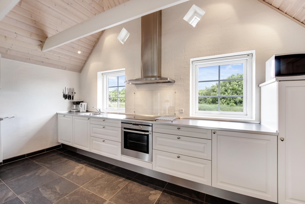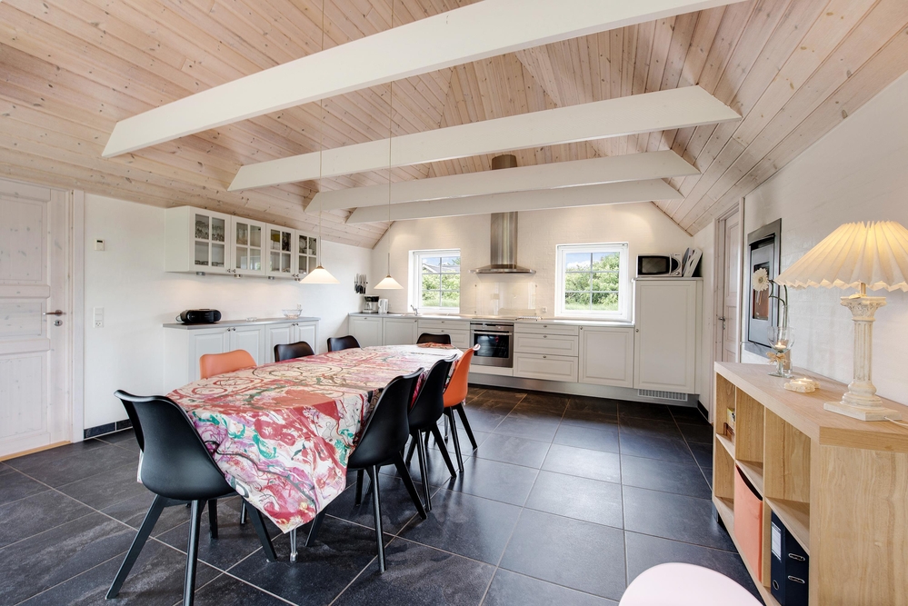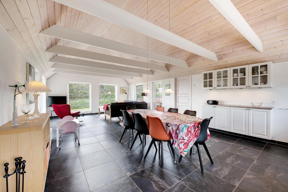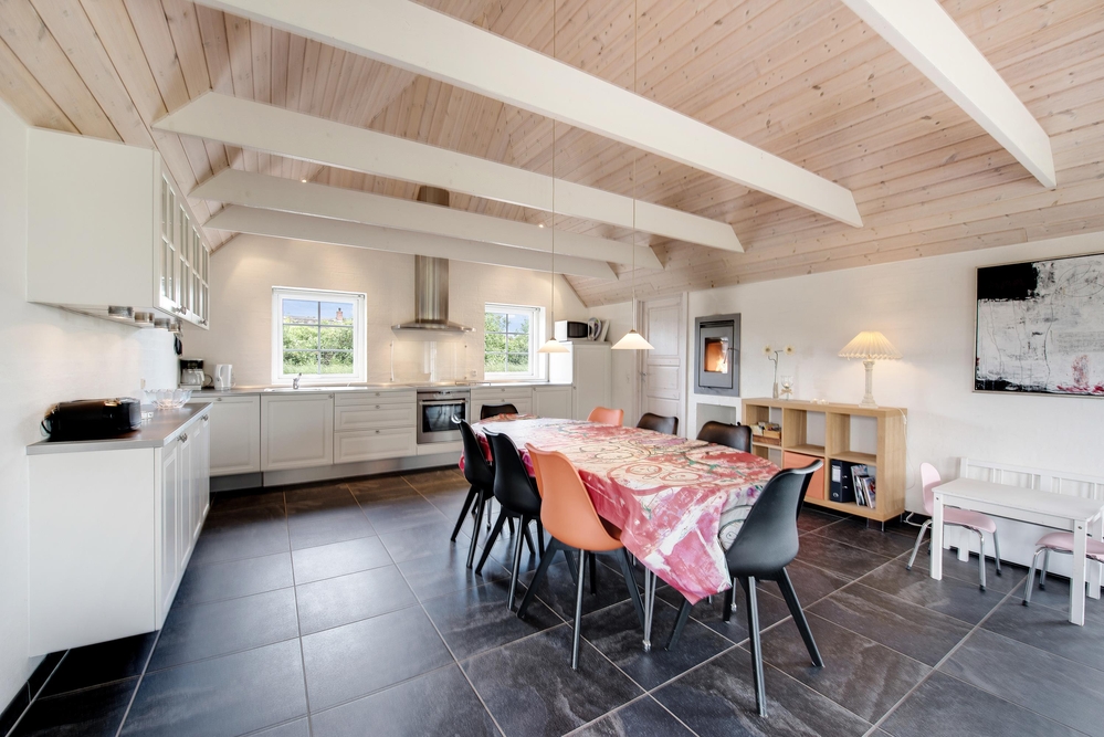 Die Aufteilung des Hauses ist perfekt ? in zwei Bereiche. Die Küche ist groß und geräumig. Vorhanden sind ein Kühlschrank mit Gefrierfach, Mikrowelle und Geschirrspüler. Der Essbereich liegt mittig im Raum, von hier könnt ihr auch den schicken, eingebauten Kaminofen genießen, der für Gemütlichkeit sowie angenehme und kuschelige Temperaturen im ganzen Raum sorgt.