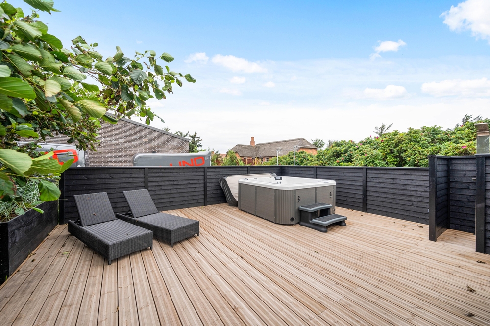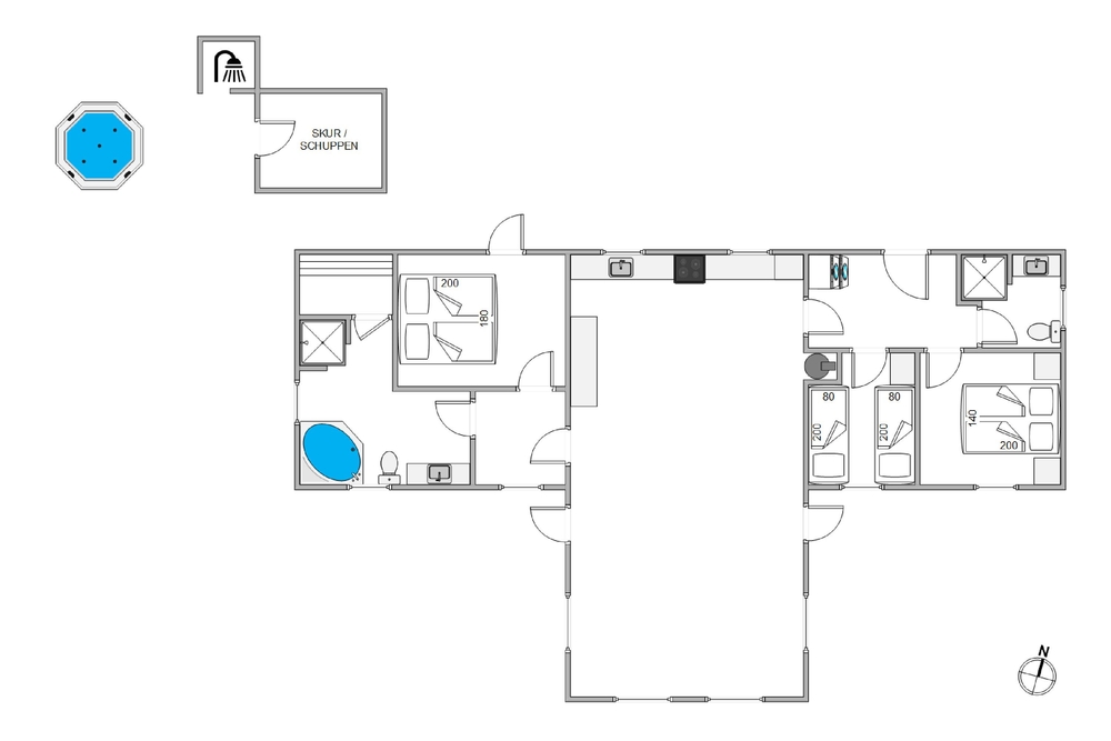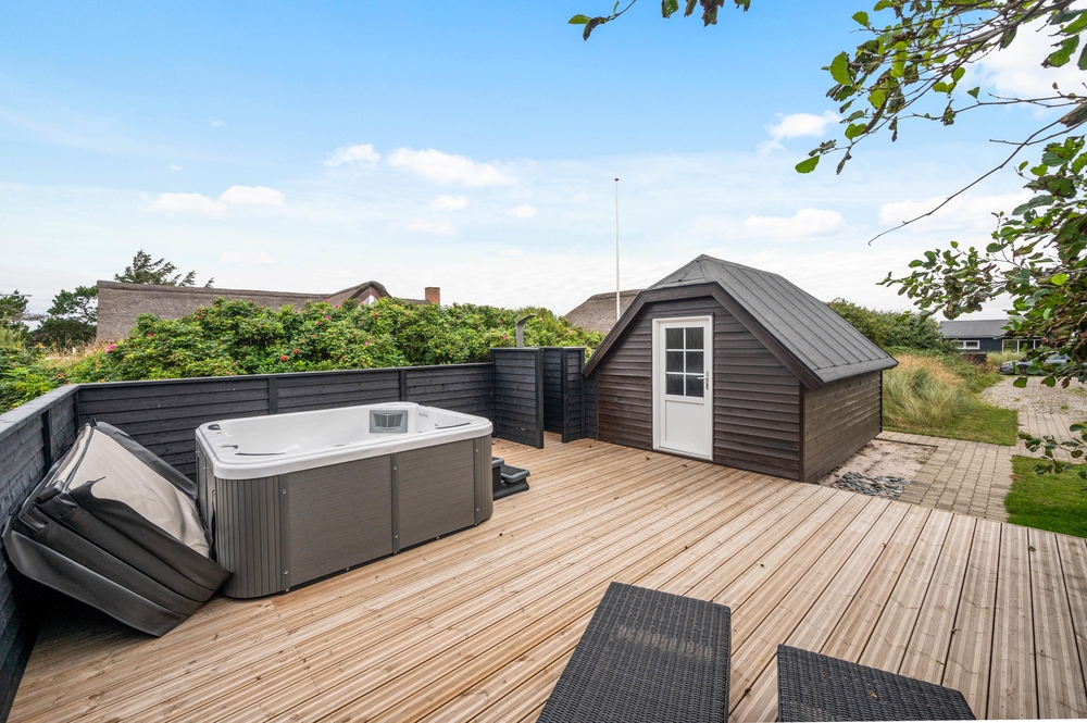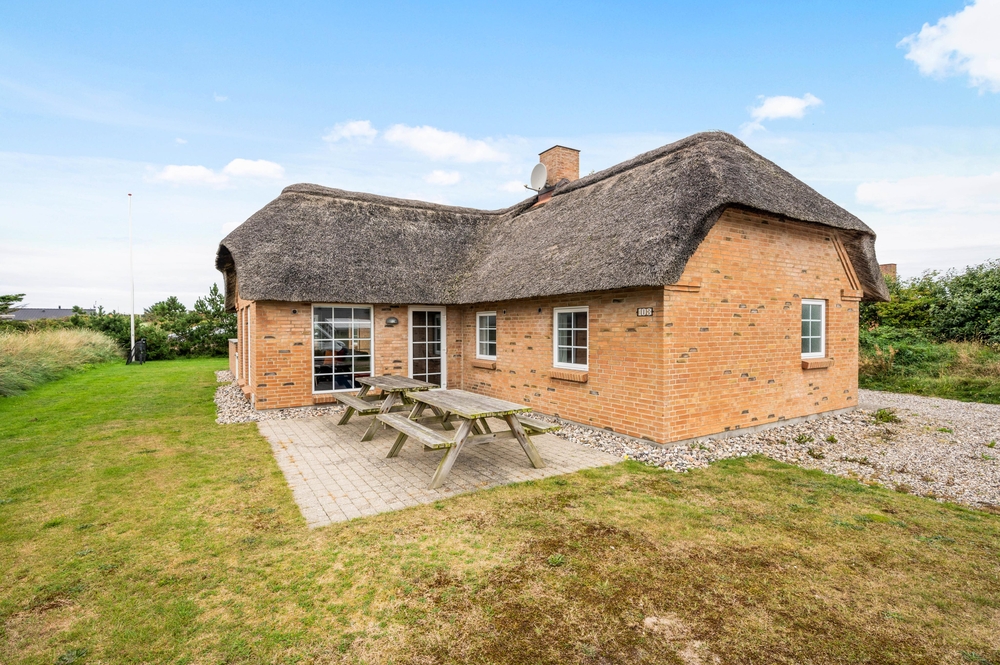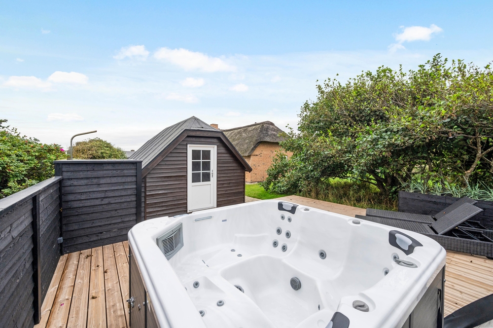 Dieses schöne Ferienhaus mit Reetdach, erbaut in 2009, ist eine gute Wahl, wenn ihr qualitätsbewusst aber auch anspruchsvoll seid. Das Haus liegt auf Nordsøvej 103, nah am Zentrum von Søndervig und nur 2 km vom schönen Golfplatz entfernt. Darüber hinaus in kurzem Geh Abstand zu den Restaurants und Geschäften, welche immer einen Besuch Wert sind. Ausgestattet mit energiesparender Wärmepumpe, schicker Möblierung, gratis W-LAN Internet und dem absoluten Highlight ? einem Außenwhirlpool sowie einer Außendusche ? lässt dieses Ferienhaus nichts vermissen.