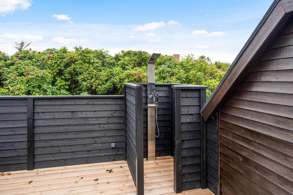 Insgesamt sind 3 gute Terassen vorhanden. Im Südwesten befindet sich eine geschlossene Terrasse und nach Südosten eine offene sowie teilweise abgeschirmte Terrasse. Das Sommerhaus liegt auf einem ruhigen Rasengrundstück, wo zur Freude der Kinder eine Schaukel für die Jüngsten vorhanden ist. Eine weitere Terrasse ist entlang der Nordwestseite des Hauses platziert, hinter dem Schuppen und damit gut geschützt vor dem Wind. Dieser Platz ist gerade an sonnigen Tagen ideal zum Grillen geeignet.