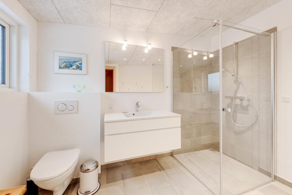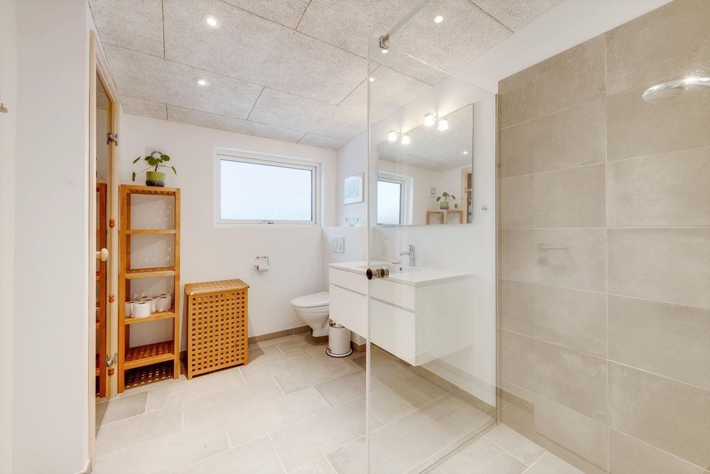 Besonders in der kalten Jahreszeit kommt die Sauna des Ferienhauses zur Geltung. Vielleicht traut ihr euch in die Nordseewellen, um ein Bad zu nehmen oder wollt einfach nach einem langen Strandspaziergang in die wohlige Wärme abtauchen. Das Badezimmer verfügt über eine Fußbodenheizung und auf der Gästetoilette stehen Waschmaschine und Trockner zur Verfügung.