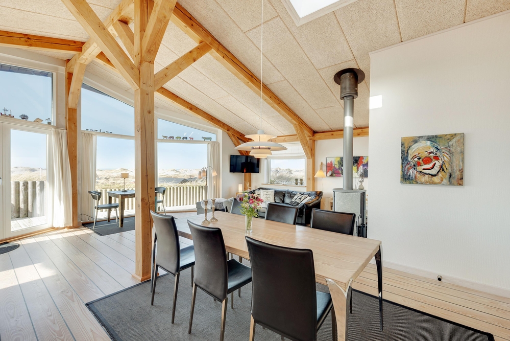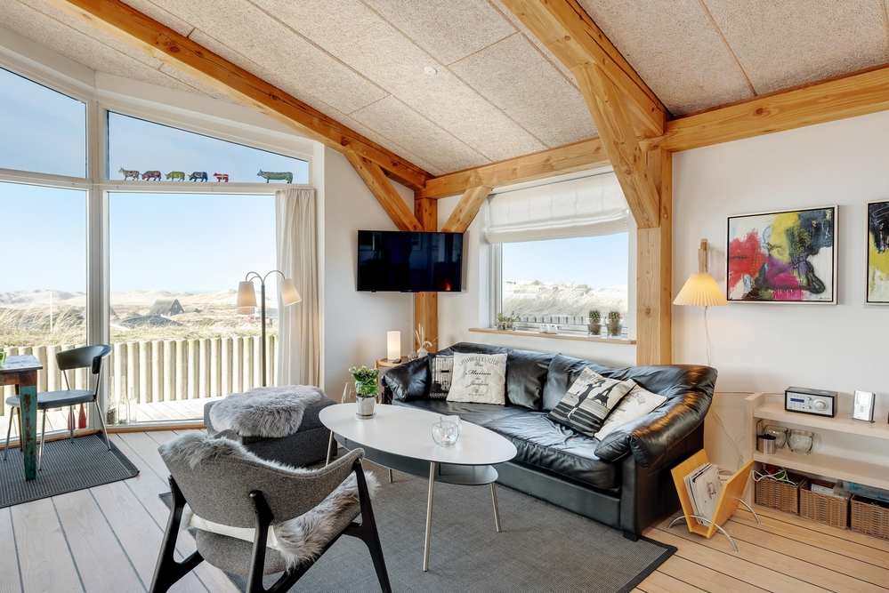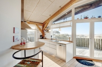 Der grosse Wohnbereich mit Wohnzimmer, Essabteil und integrierter Küche bilden das Herzstück des Urlaubsdomizils. Hier lassen sich viele gemeinsame, gemütliche Stunden mit knisterndem Kamin und imposantem Meerblick durch die breite Fensterfront verbringen ? stellt euch nur die vielen, tollen Sonnenuntergänge vor, die ihr vom Sofa aus verfolgt.