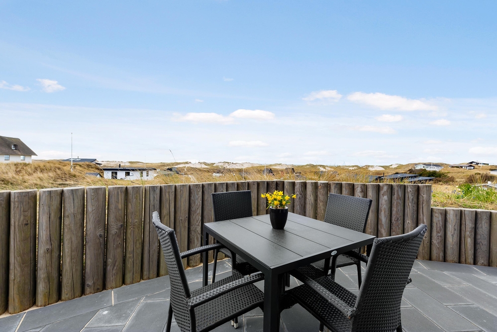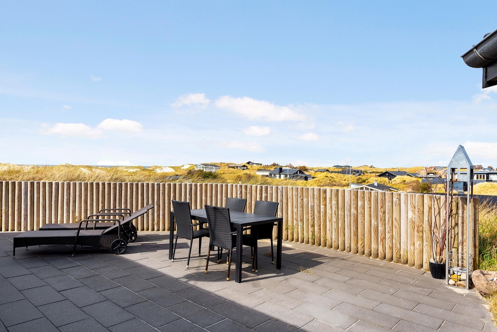 Das Haus ist von einer grossen, abgeschirmten Terrasse umgeben, auf der die Gartenmöbel parat stehen, so dass die warmen Sommertage mit dem fantastischen Meerblick bestens genossen werden können. Am Abend wird der Grill angezündet und an lauen Sommerabend unter offenem Himmel der neue Tag geplant.