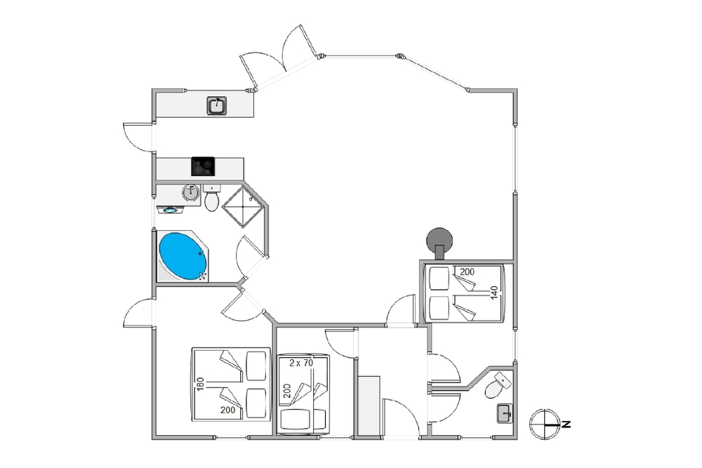 Es gibt sowohl eine Badezimmer und ein Gäste-WC. Im Badezimmer könnt ihr es euch bei einer entspannten, erfrischenden Wellnessstunde im Whirlpool an einem kalten Wintertag oder nach einem langen Spaziergang an der frischen Meeresluft richtig gutgehen lassen.