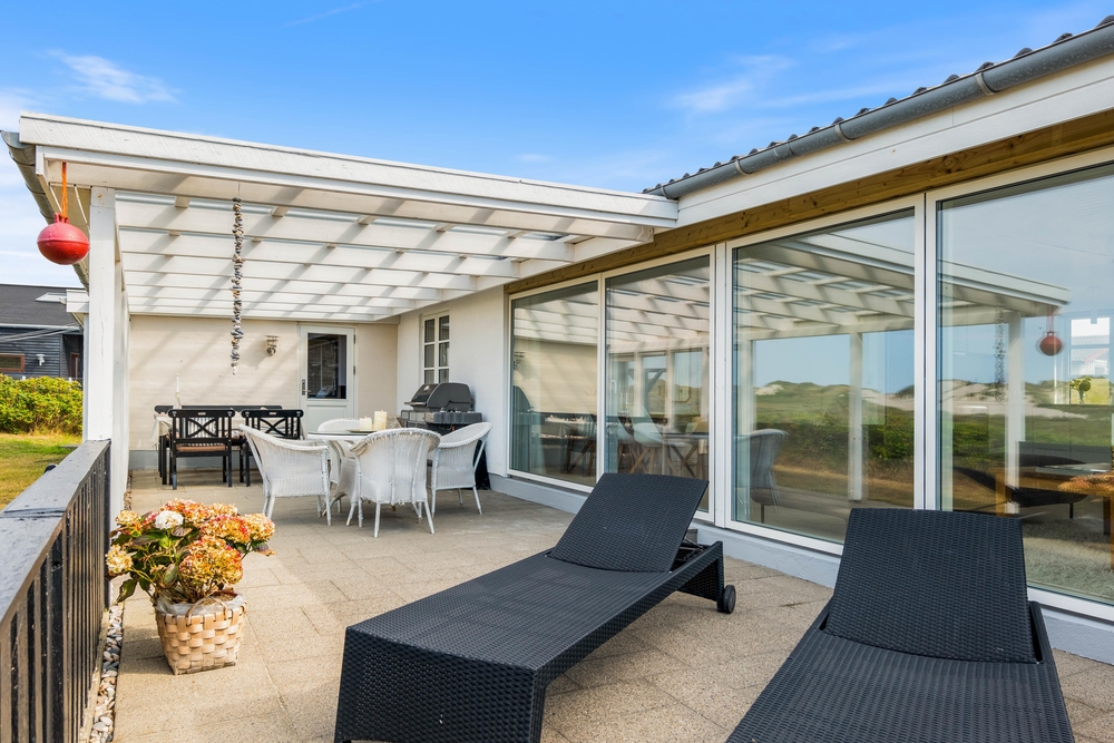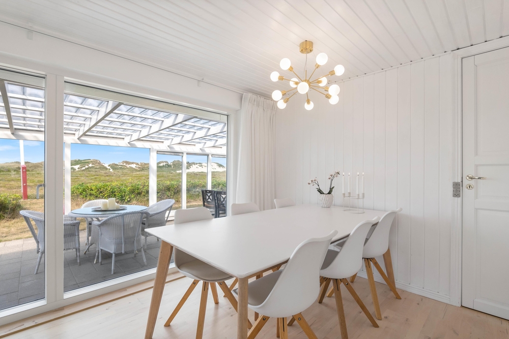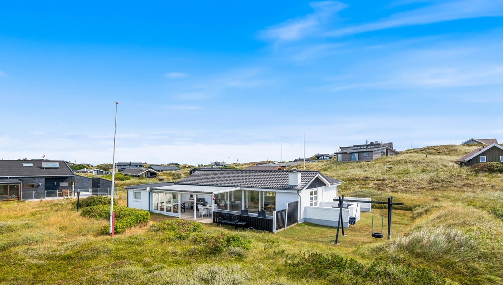 Dieses wunderbar helle und lichtdurchflutete Ferienhaus mit Platz bis zu für 4 Personen erwartet euch im Nordsøvej 226, 800 Meter vom Zentrum in Søndervig und nur knappe 100 Meter vom feinen Sandstrand entfernt. Der großzügige Wohn- und Essbereich, mit Kamineinsatz und bodentiefen Fenstern, dürfte euer neuer Lieblingsplatz werden ? was für eine traumhafte Aussicht auf die umliegende Dünenlandschaft und den Sonnenuntergang. Während ihr gerade im Sommer auf einer der Terrassen entspannt, könnt ihr das sonnige Wetter, das Rauschen der Wellen und die absolute Traumlage mitten in der Natur genießen.