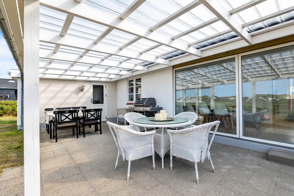 Da dieses Ferienhaus gleich mehrere Terrassen besitzt, könnt ihr der Sonne tagsüber folgen und so wirklich jeden Sonnenstrahl ausnutzen. Die überdachte und windgeschützte Terrasse bietet auch bei unbeständigem oder kühlerem Wetter einen geschützten Raum, um draußen sitzen und den schönen Ausblick genießen zu können. Ein Grill steht bereit, der zu langen Grillabenden einlädt.