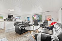 Der gemütlich gestaltete Wohn- und Essbereich mit integrierter, gut ausgestatteter Küche bietet gleich zwei Wärmequellen. Zum einen den Holzofen und zum anderen die alternativ zu nutzende Wärmepumpe. Beide sorgen für kuschelige Temperaturen und dank der niedrigen Deckenhöhe, liegt der Energieverbrauch im überschaubaren Rahmen. Hier könnt ihr viel Zeit miteinander verbringen, egal ob ihr gemeinsam neue Rezepte ausprobiert oder bei einem spannenden Spieleabend den nächsten Champion kürt.