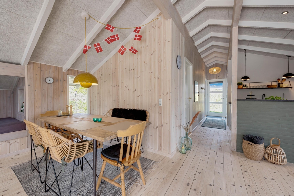 In diesem gemütlichen Ferienhaus in Søndervig mit Platz für bis zu 4 Personen könnt ihr als kleine Familie oder als Paar einen entspannten Urlaub verbringen. Die Einrichtung wurde liebevoll aufeinander abgestimmt, auch damit ihr euch auf Anhieb wohlfühlen könnt.Das Herz des Hauses ist der offene Wohn- und Küchenbereich, welcher auch über einen Holzofen verfügt. Gerade an kühleren Abenden sorgt ein wärmendes Feuer nicht nur für euer Wohlbefinden, sondern auch für ein schönes Urlaubsfeeling. Über den Abwasch braucht ihr euch keine Gedanken zu machen, da den, der Geschirrspüler übernimmt.
