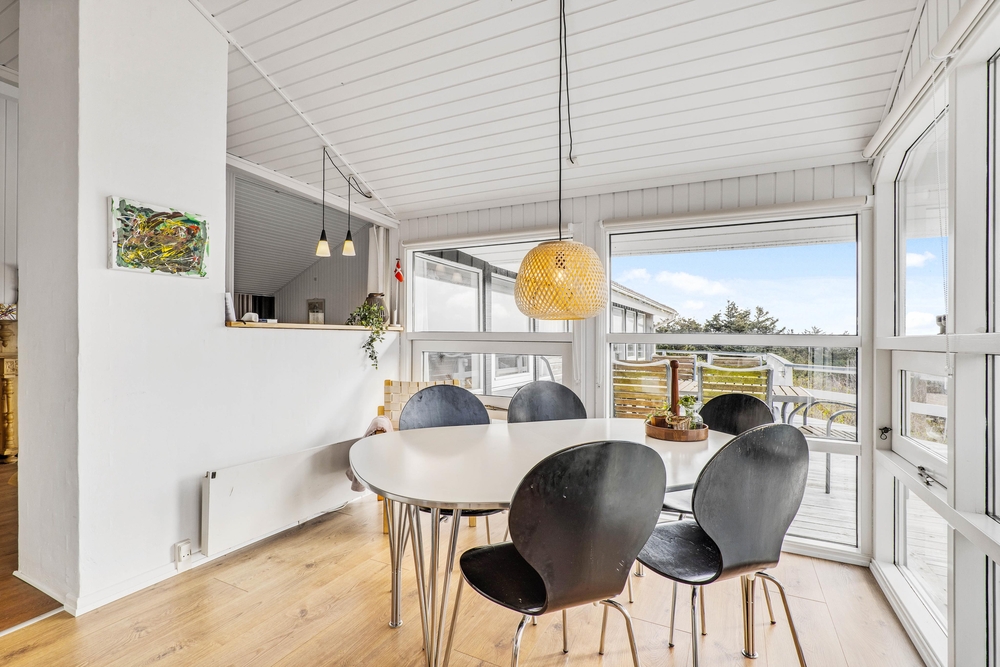 Abgesehen von der einzigartigen Aussicht liegt das Ferienhaus an einer ruhigen, geschlossenen Straße, und mit nur 450 Metern Entfernung zur Nordsee ist ein Strandausflug fast schon ein Muss. Wenn ihr Lust auf Abwechslung von der Natur haben, bietet das gemütliche Stadtzentrum von Søndervig Einkaufsmöglichkeiten und gute Restaurants.