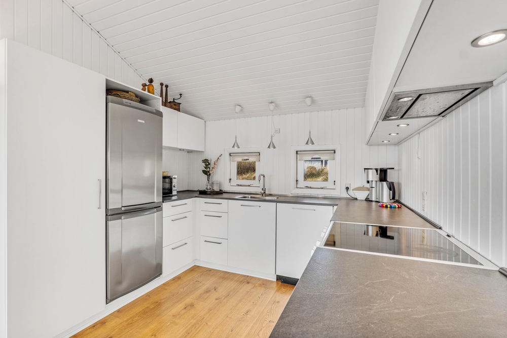 Das Ferienhaus befindet sich im Nordsøvej 248 und lädt zu gemütlichen Stunden mit der Familie ein. Das Ferienhaus ist hell und freundlich eingerichtet, mit einem großen Wohnzimmer, das zur schönen Wohnküche offen ist. Im Wohnzimmer habt ihr reichlich Gelegenheit, euch vor dem Holzofen zu entspannen und die Gesellschaft des anderen zu genießen. Außerdem ist das Ferienhaus mit mehreren bodentiefen Fenstern ausgestattet, die sowohl für viel Tageslicht als auch für eine gute Aussicht auf die westjütländische Natur sorgen.