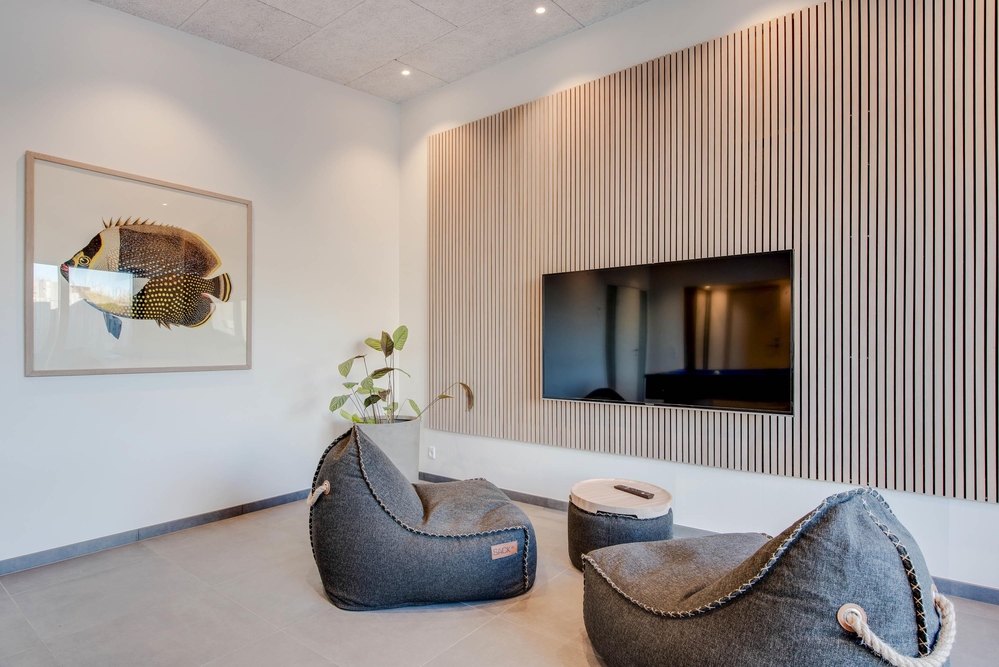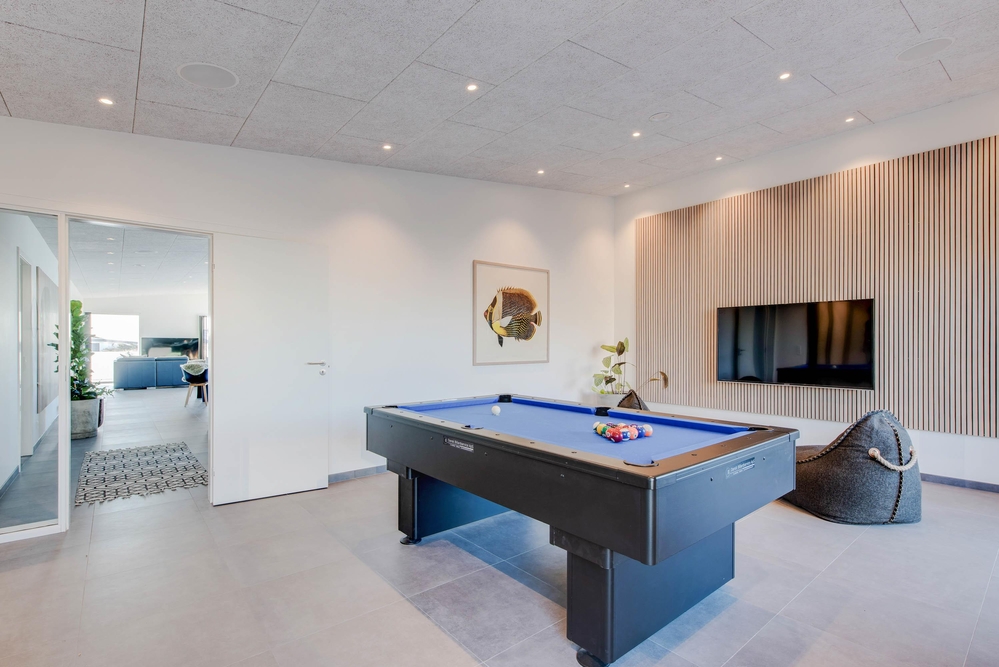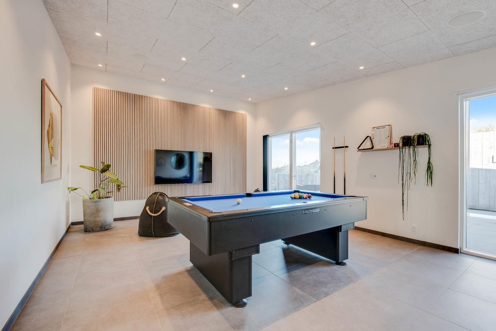 Angefangen bei der qualitativ hohen und geschmackvollen Ausstattung bis hin zu den netten Extras in Form von Aktivitätsbereich mit Billardtisch, Saunahaus sowie Badetonne auf der Terrasse. Insgesamt 4 Badezimmern und 3 Schlafzimmern für insgesamt 6 Personen. Sollten die Oberlichter in den Schlafzimmern euch des Nachts stören, könnt ihr diese per Fernbedienung verdunkeln.