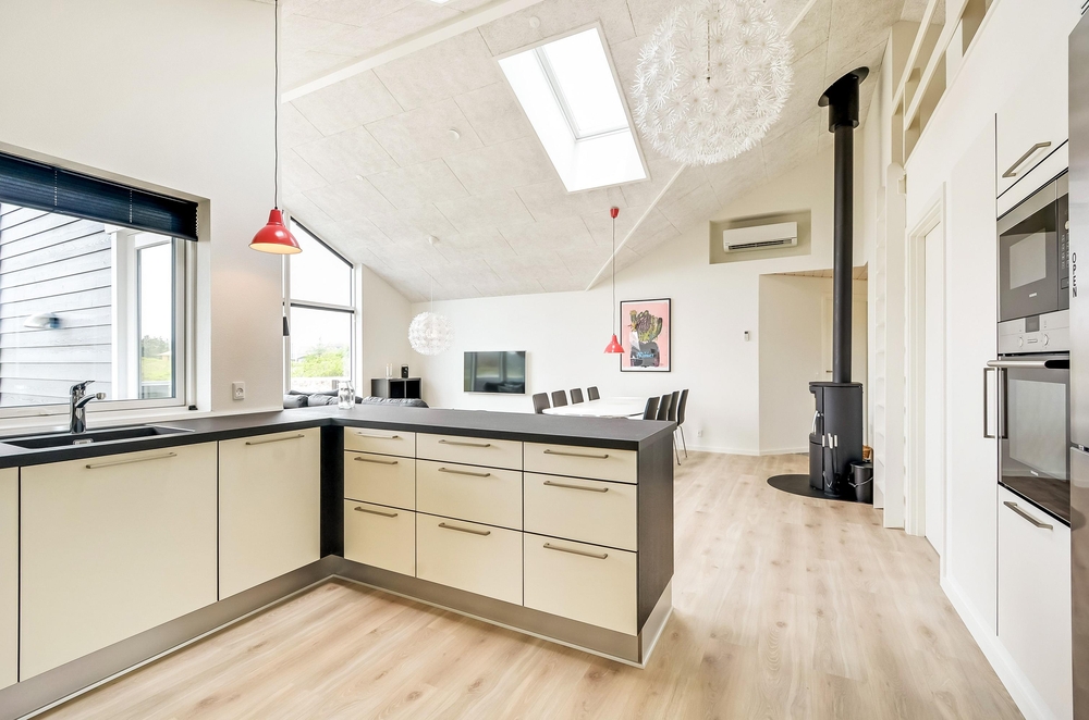 Die voll ausgestattete Küche mit Spülmaschine erleichtert euch den Alltag, und nach einem langen Tag am Strand könnt ihr es euch vor dem Kaminofen gemütlich machen oder in der Sauna entspannen. Der Wohnbereich überzeugt mit seiner hellen und komfortablen Ausstattung, bietet eine effiziente Wärmepumpe, welche alternativ zum Kaminofen für angenehme Temperaturen sorgt. Eine Fußbodenheizung im Bad, die für wohlige Wärme sorgt, bietet weiterhin einen guten Komfort.