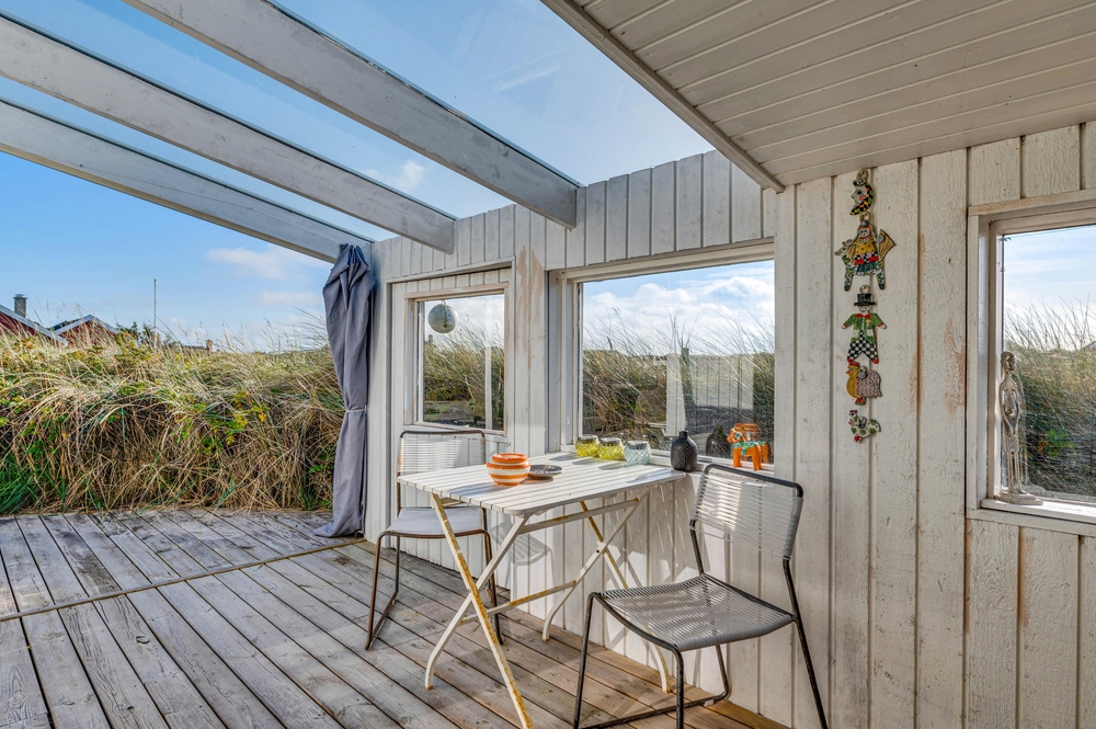 Das Sommerhaus bietet euch einen schönen Außenbereich mit tollem Ausblick! Hier werdet ihr die sonnigen Tage auf der Terrasse des Hauses genießen, wo ihr es euch auf den Gartenmöbeln gemütlich machen könnt, während ihr dem Rauschen der Wellen im Hintergrund lauscht. Ein Teil der Terrasse ist überdacht und geschützt, sodass ihr auch im Schatten sitzen oder an trüben Tagen dem Regen trotzen könnt.