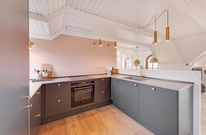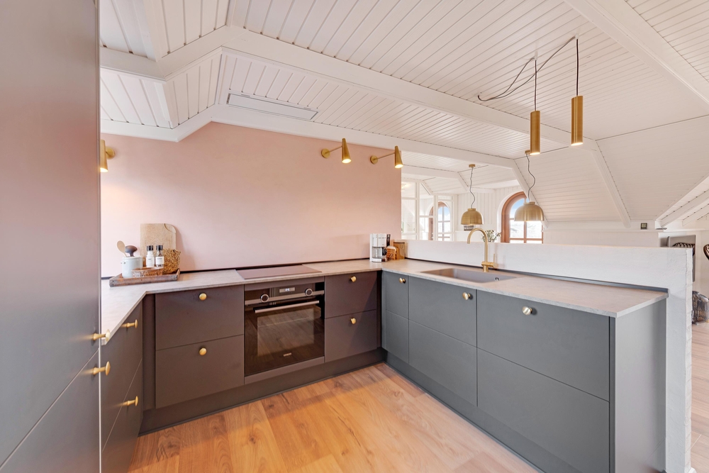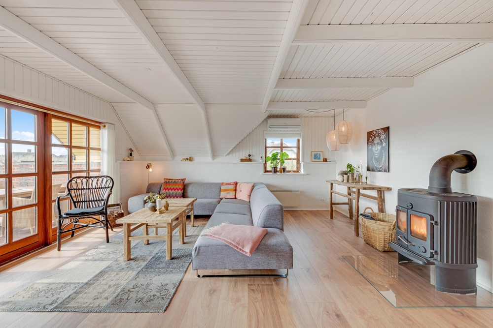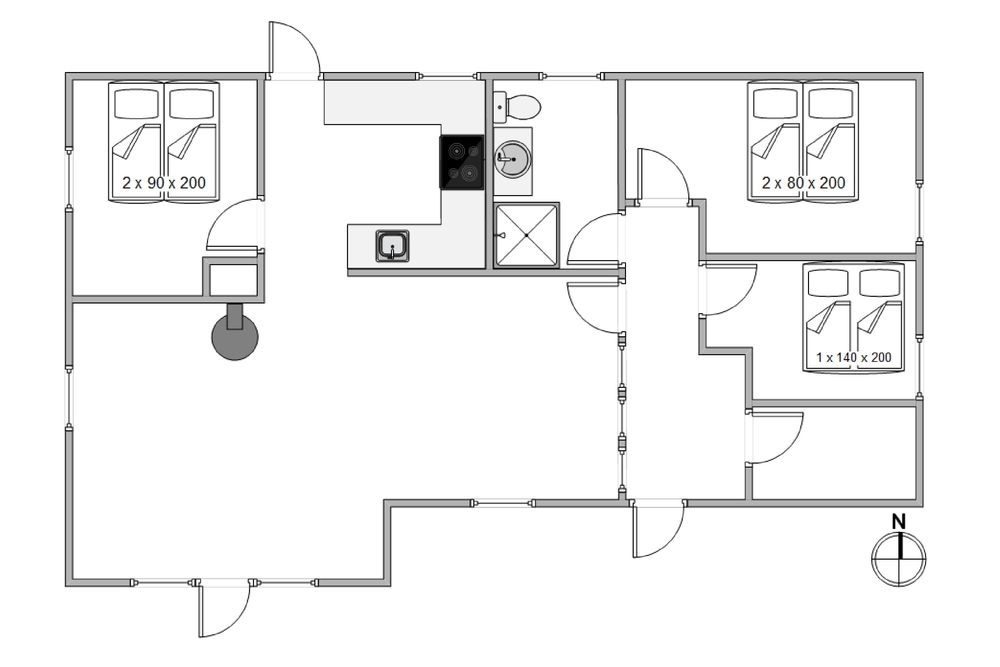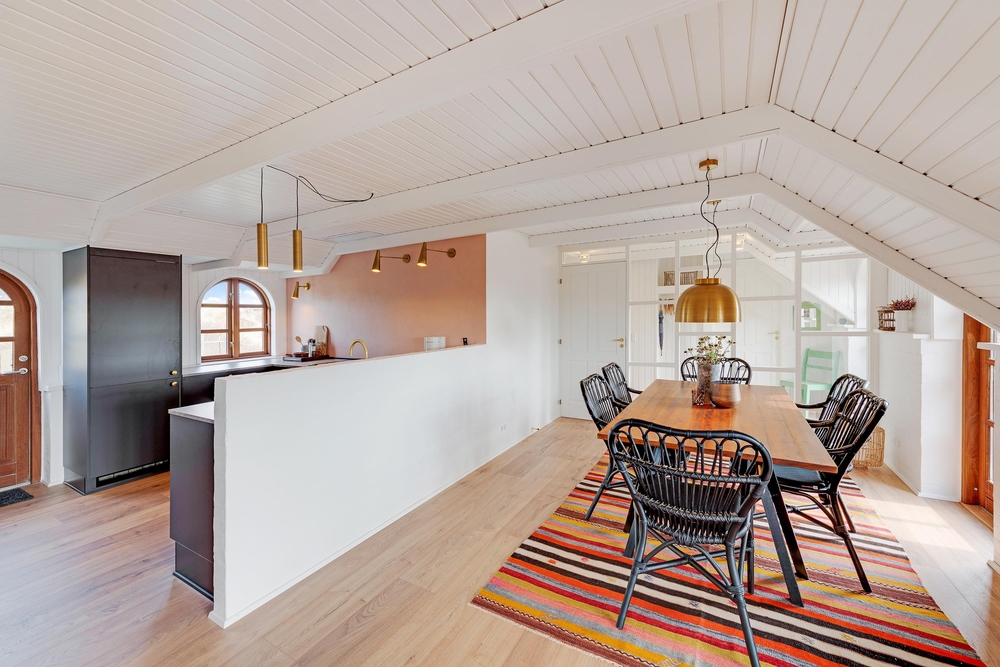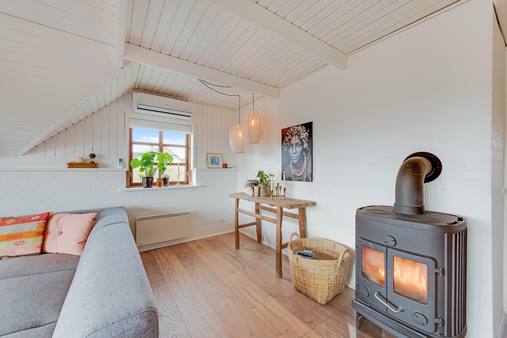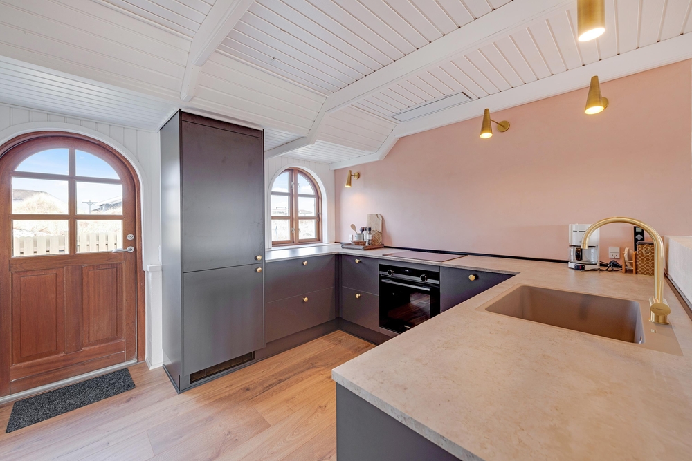 Das Ferienhaus hat ein neues Badezimmer und eine neue Küche bekommen. Die Küche ist mit dem Wohnzimmer und der Essabteilung verbunden, und dieser offene Aufenthaltsraum lädt zu gemütlichen Stunden mit Kochen, Kartenspiel und Entspannung vor dem knisternden Kaminofen ein.