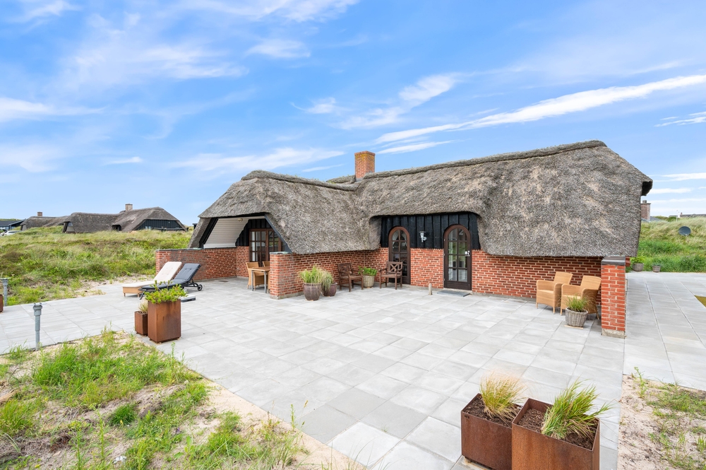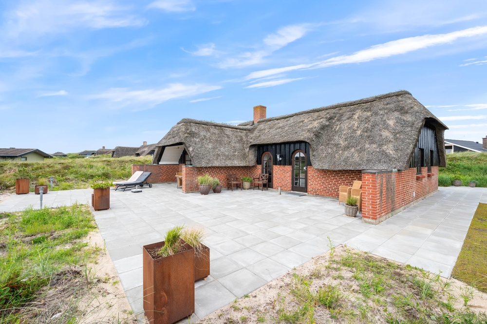 Mitten in der schönen Dünenlandschaft Sondervigs, nur ein kleiner Spaziergang von der Nordsee und der Stadtmitte entfernt, liegt dieses gemütliche Reetdachhaus für 5 Personen. Die Einrichtung strahlt mit seinem schönen Interieur, dem Kaminofen und einer neuen Küche ?hygge? aus. Auf der Terrasse gibt es viel Platz für Sonnenbaden in der frischen Luft.