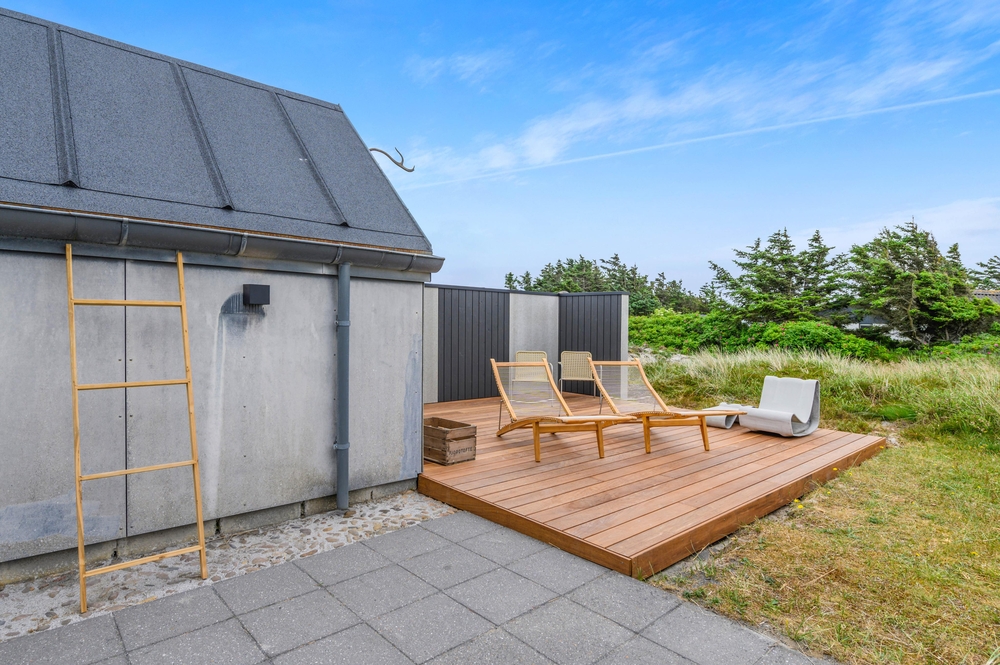 Falls ihr euren Tag lieber an eurem Ferienhaus genießen wollt, könnt ihr dies auf einer der Terrassen tun. Da ein Teil der Terrasse abgeschirmt und teilweise überdacht ist, könnt ihr auch an windigeren Tagen draußen sitzen und die frische Luft genießen. Abends gemeinsam grillen und den Tag entspannt ausklingen lassen ? so kann euer kommender Familienurlaub an der dänischen Westküste aussehen.