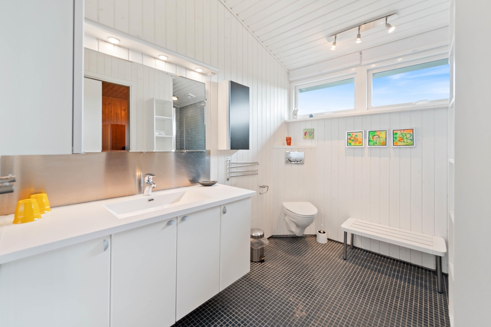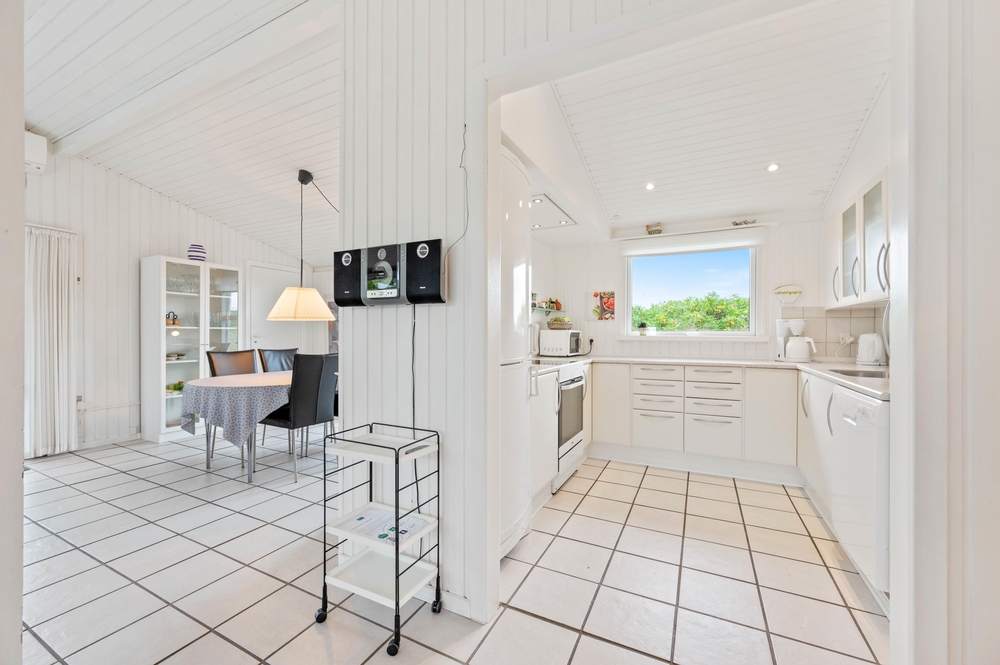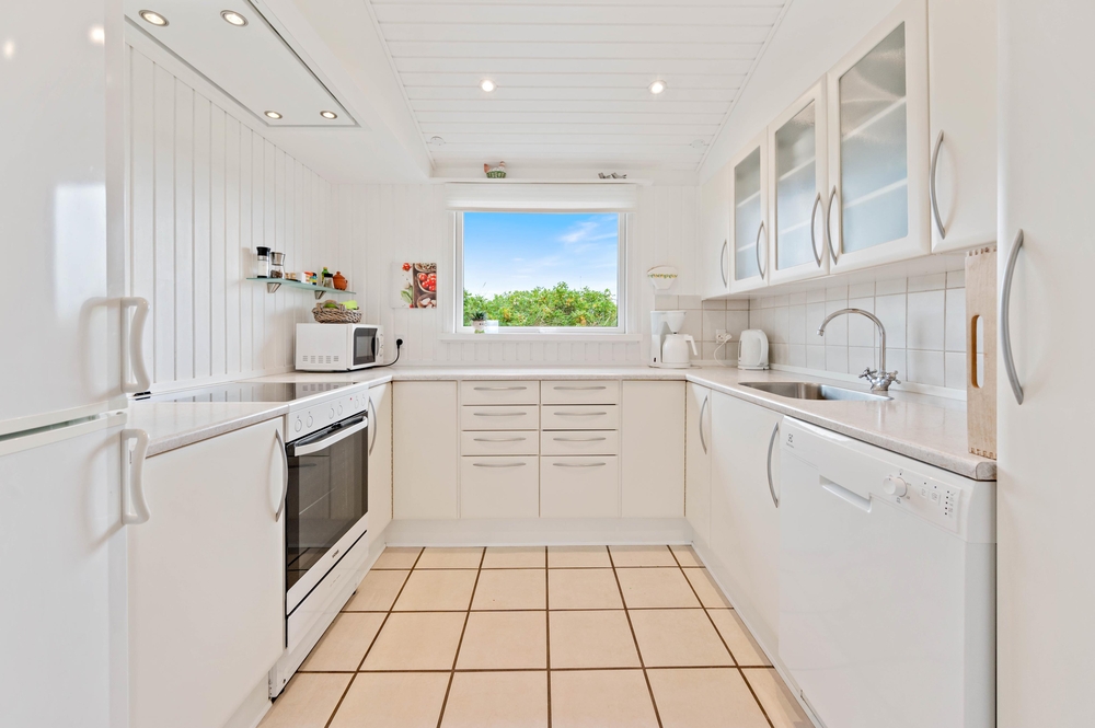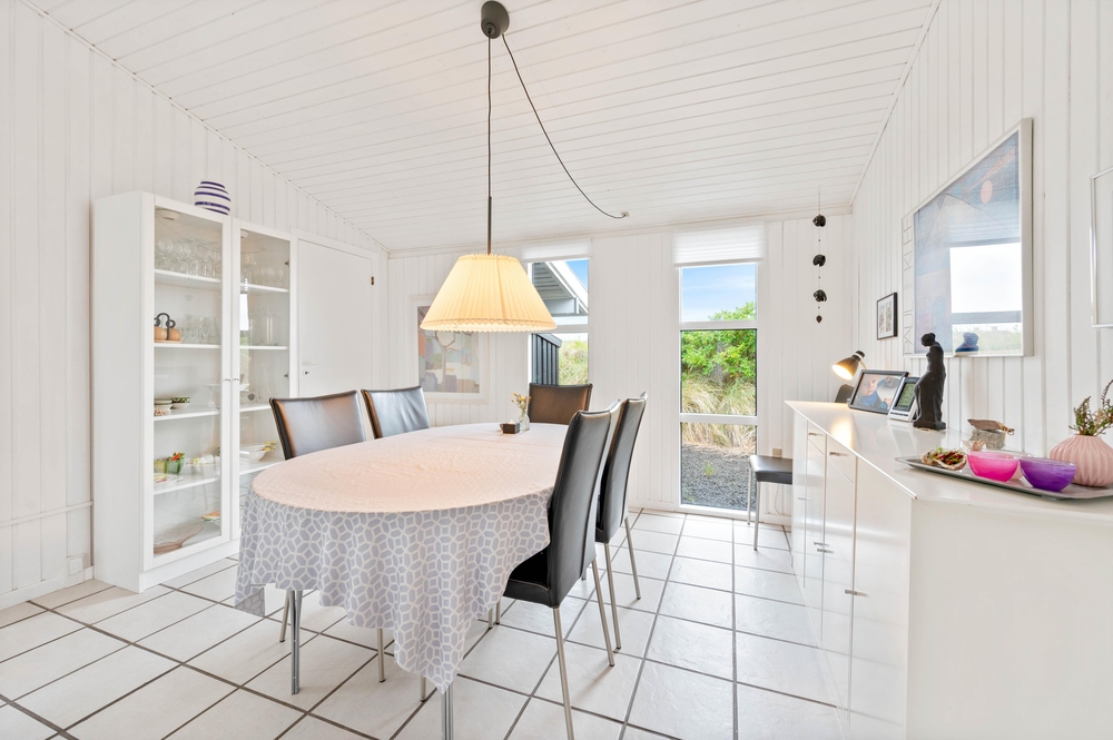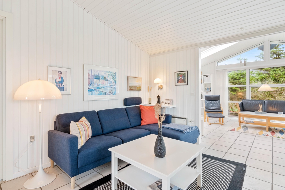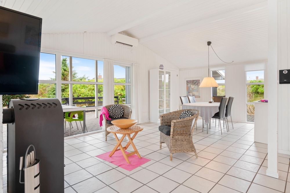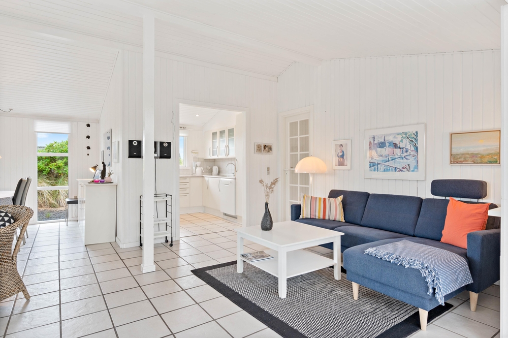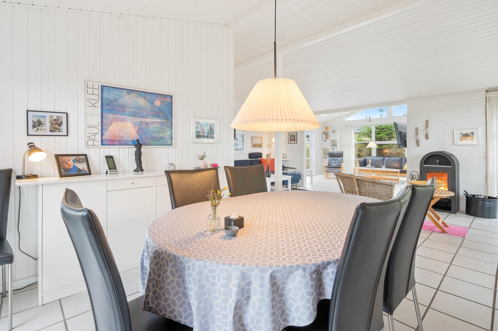 In dem Ferienhaus werdet ihr euch sofort wie zu Hause fühlen. Mit seinen weißen Wänden und dem fantastischen Licht ist das Ferienhaus herrlich hell und einladend. Das schafft eine schöne Atmosphäre, in der ihr euren Urlaub verbringen könnt. Das Ferienhaus ist groß und geräumig, und alle werden sich hier wie zu Hause fühlen. Das große Wohnzimmer bildet den Rahmen für viele gemütliche gemeinsame Urlaubsmomente für die ganze Familie mit gutem Essen, lustigen Spielen und guten Filmen. Damit ihr euch wirklich zurücklehnen und euren Urlaub genießen könnt, stehen euch bequeme Sofas und Sessel bereit. Der Holzofen verleiht der Gemütlichkeit den letzten Schliff und sorgt für die typische Ferienhausatmosphäre.