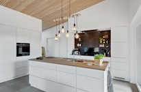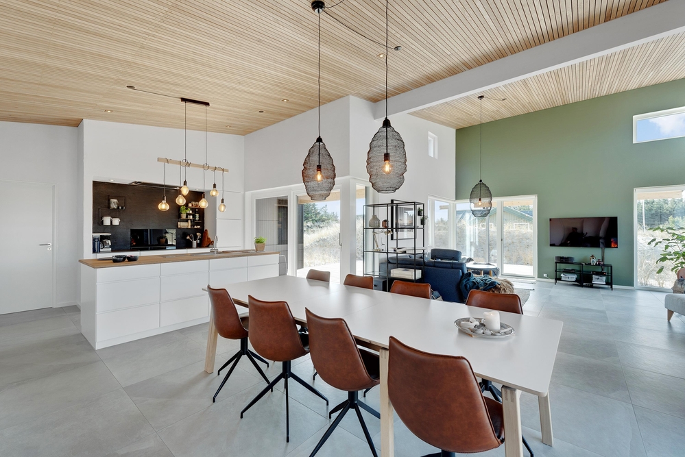 Große Fenster lassen viel Licht herein, dies gilt insbesondere für die große Küche, welche in offener Verbindung zum Wohnzimmer steht. Hier könnt ihr viele schöne und gemütliche Momente vor dem knisternden Holzofen verleben.