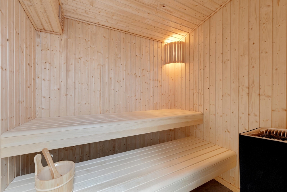Das Haus ist zudem auch praktisch aufgeteilt ? 2 Bäder, eines mit Zugang von einem der Schlafzimmer und das andere mit einem Whirlpool. Im Nebengebäude befindet sich eine Sauna, welche auch an den kühleren Urlaubstagen für wohlige Wärme sorgt.